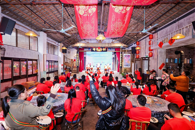 下午的团队拓展更是将活动氛围推向高潮。大家首先在学校艺术教研室主任张景贤老师的带领下开展了一场别具特色的美育浸润素质课堂,学唱了校歌,学打了开慧鼓,表演了具有湖湘特色的文艺节目。接着,在专业教练的带领下,分组参与了多项协作挑战项目,活动中,大家积极沟通、默契配合,展现出蓬勃的朝气与团队的凝聚力。通过轻松有趣的互动,新老教职工之间迅速拉近距离,建立起深厚友谊。