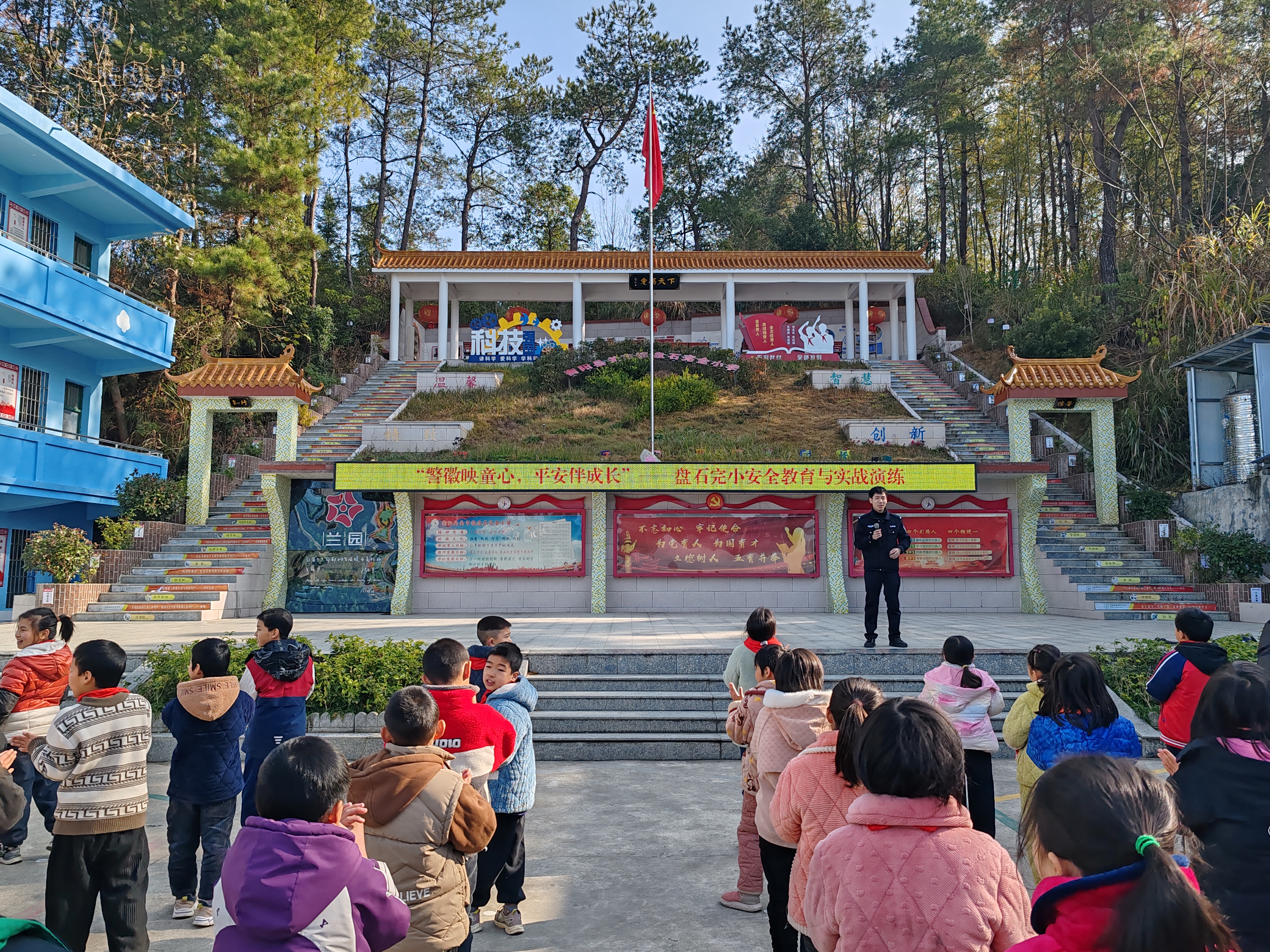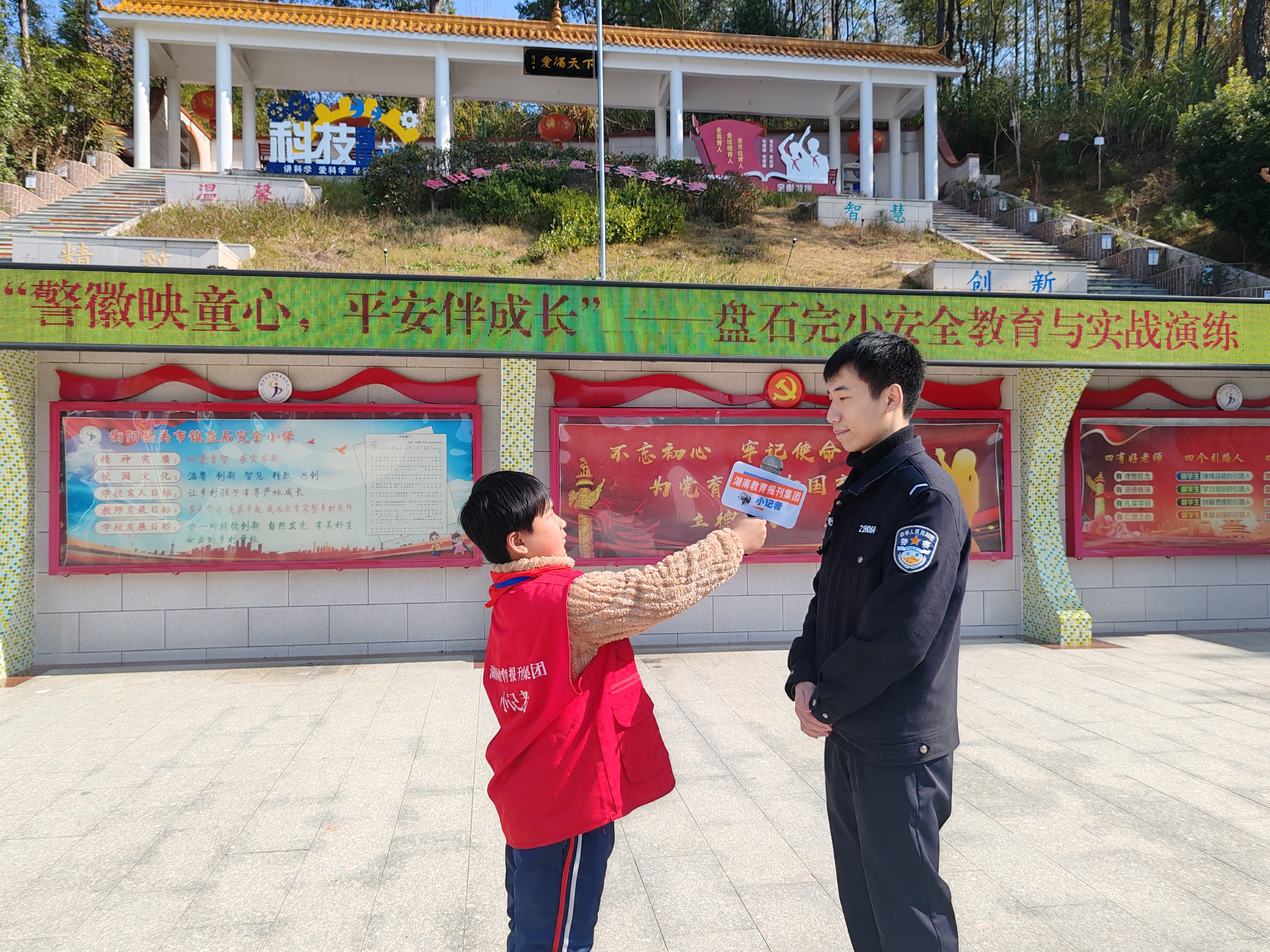 湖南教育报刊集团衡阳县小记者站(小记者 肖洋 阳娜)“祝警察叔叔节日快乐!您辛苦啦!”同学们在集会上齐声呼喊,行队礼。近日,在“中国人民警察节”来临之际,衡阳县关市镇盘石完小联合辖区派出所举办“警徽映童心,平安伴成长”主题活动,通过主题宣讲、实战演练等形式,让警营正能量浸润童心。