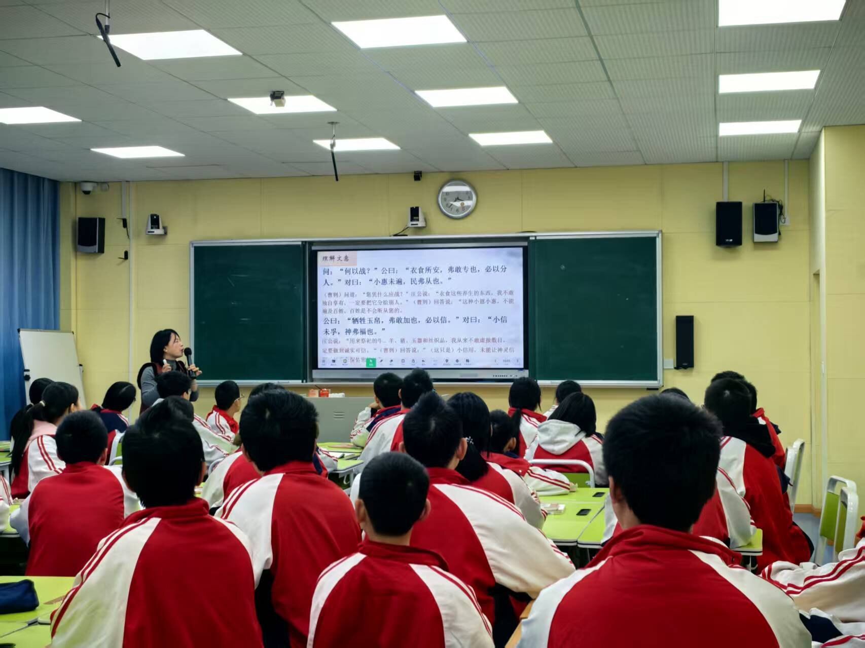 实践环节中,长沙市开福区清水塘江湾小学的曹佳裕老师现场示范《曹刿论战》“歌诀乐读”课。八年级88班的同学们在节奏明快的诵读中轻松走进文言世界,课堂笑声与书声交融,让观摩的老师赞叹不已。