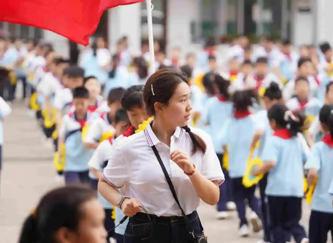 在每周两节的社团课上,刘炫瑶鼓励学生跟随音乐节奏打节拍,用游戏的方式开启一段曼妙的音乐之旅。在合唱团里,她从简单的音阶和耳熟能详的儿歌入手,逐步过渡到专业训练,并带领学生在理解歌曲创作背景的基础上进行排演。从“音乐小白”到略通乐理,从“大白嗓”到能用接近专业的方式演唱,刘炫瑶的坚持为学生带来了看得见的改变。起初排练队形时,孩子们常推搡着不愿站前排。如今,他们已能落落大方地站上“C位”。登台演出时,孩子们自信、阳光的表现,让家长感到惊喜。