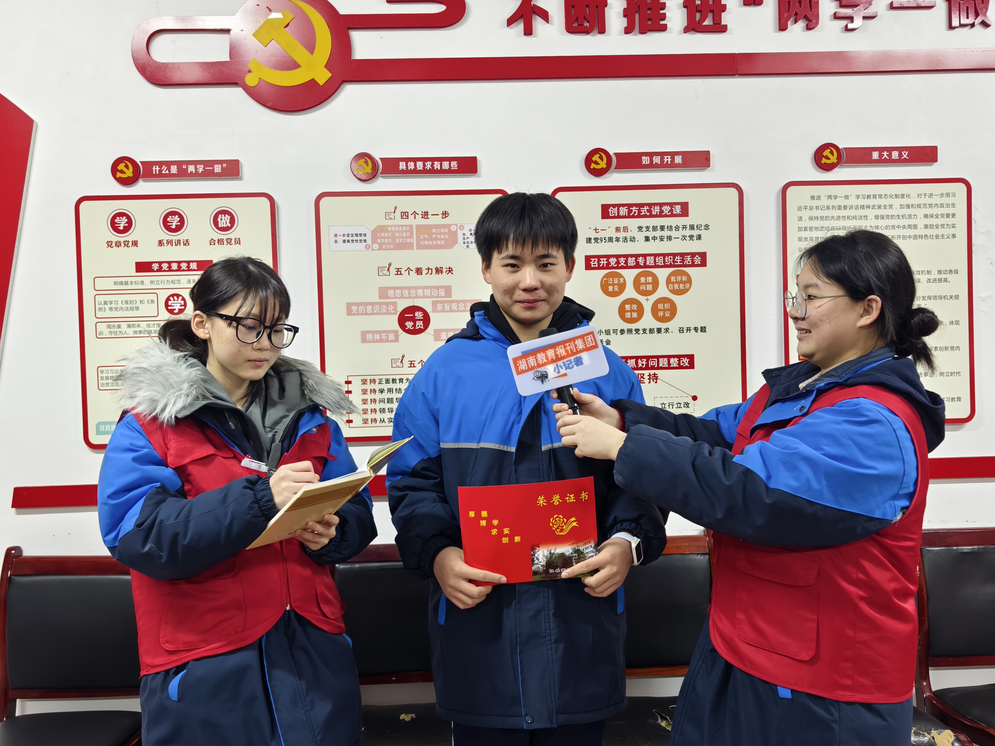 “成为小记者的这段经历,是我青春里最珍贵的收获。”获奖小记者徐博宇在接受采访时难掩内心的激动与感恩,“从第一次举起话筒时的紧张忐忑,到如今从容穿梭于校园各个角落记录故事,感谢学校与湖南教育报刊集团提供的优质实践平台,更感谢钮晓彦老师和龙老师的悉心指导与一路陪伴。这份奖状不是终点,而是新的起点,我会始终保持对文字的热爱与对真相的追求,用真实的笔触传递校园声音,在采访实践的道路上不断突破自我、砥砺前行。”
