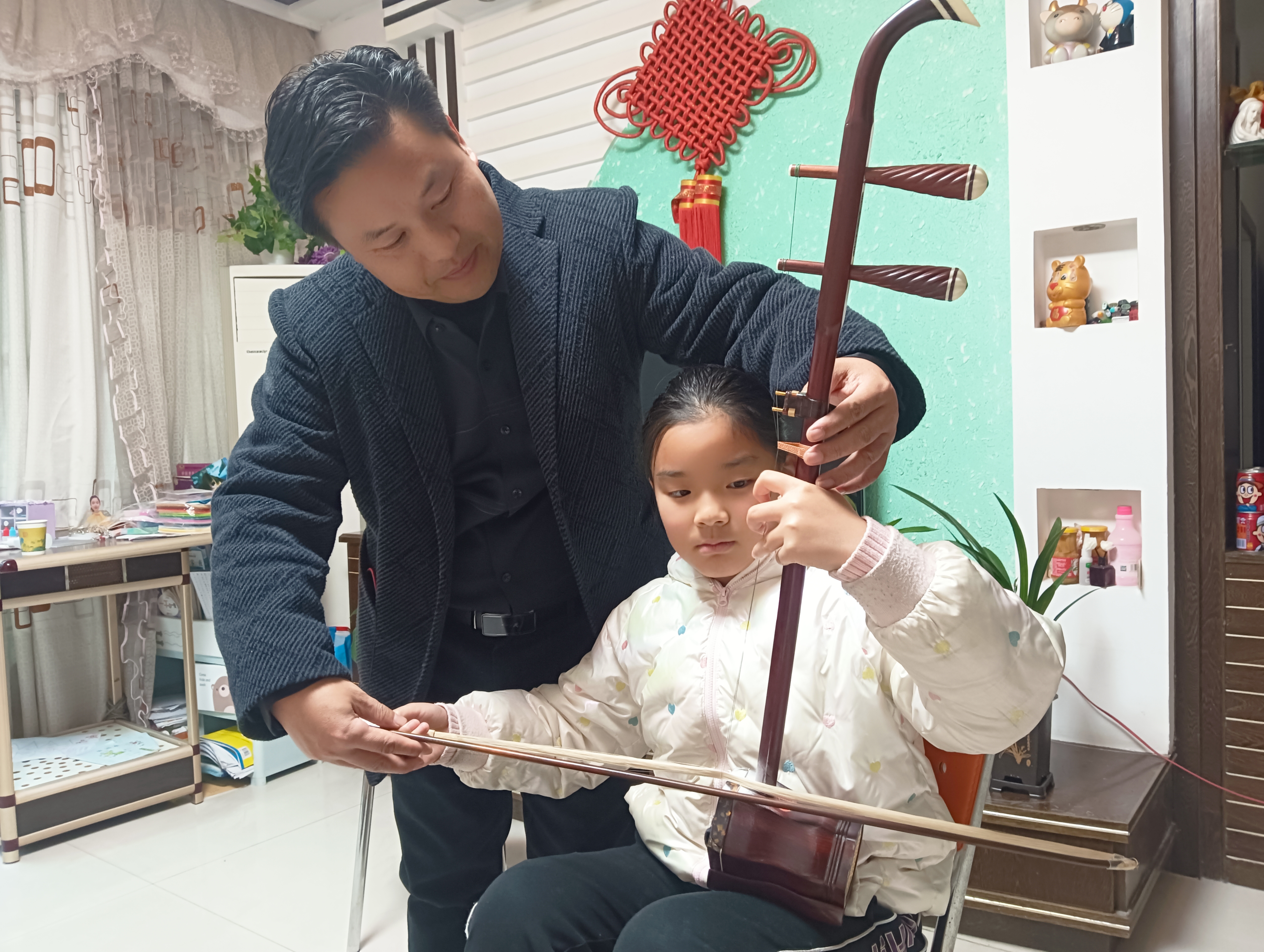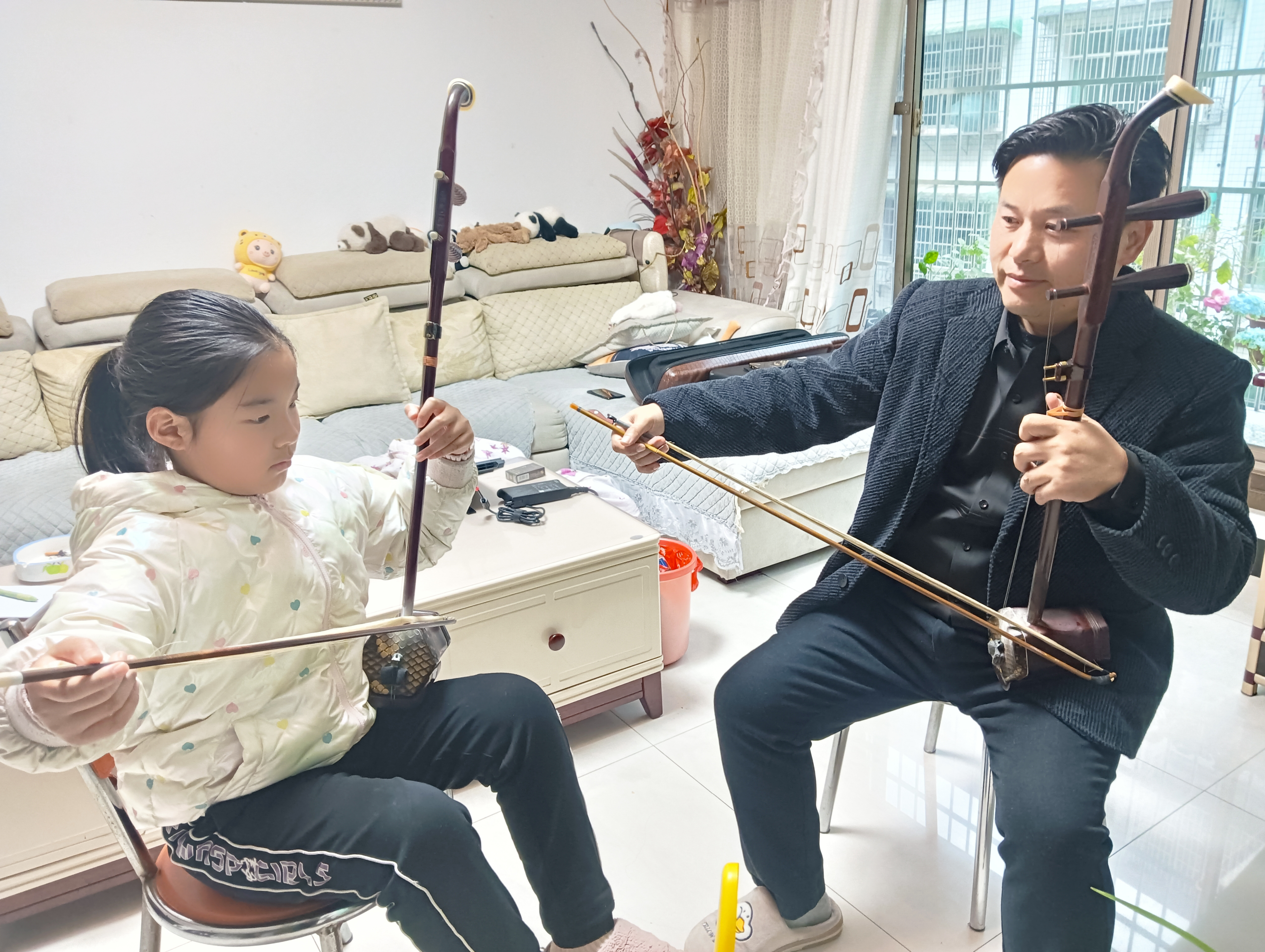 我叫高子茜,是衡阳县滨江学校的学生,也是湖南教育报刊集团的小记者。我经常在各种演出中看到二胡名曲《赛马》的表演,被那优美奔放、气势磅礴的旋律和演奏者的神情姿态深深吸引,便萌生了在今年寒假要学会拉二胡的想法。爸妈很支持,便邀请了他们曾经一起工作过的同事、衡阳市民族管弦乐学会理事高红卫老师来家里教我。