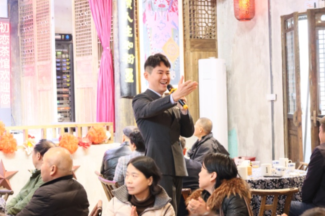 2月6日的主题活动,是这场音乐党课的首秀,也是对张景贤企业实践初步成果的一次集中检验。在“初恋茶馆”,张景贤娓娓道来。当他通过表演复现杨开慧送别毛泽东那一幕,当他诵读那些“在黑暗而狭小的空间里,独自燃烧了半个多世纪”的书信片段,当他唱响根据书信改编的原创歌曲《最美的情书》时,现场观众无不被深深吸引,许多人潸然泪下。