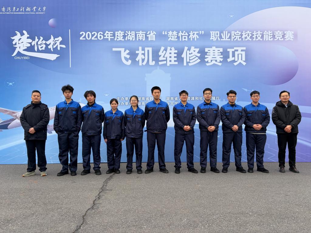 湖南教育新闻网讯(通讯员 郭俊)2月3日,2026年度“楚怡杯”湖南省职业院校技能竞赛“飞机维修”赛项在湖南汽车工程职业大学圆满落幕。长沙航空职业技术学院机电学院三支学生代表队奋勇争先,从全省7所高校的19支队伍、57名选手中脱颖而出,斩获团体一等奖1项、二等奖1项、三等奖1项,彰显了学院航空维修专业人才培养的过硬实力。