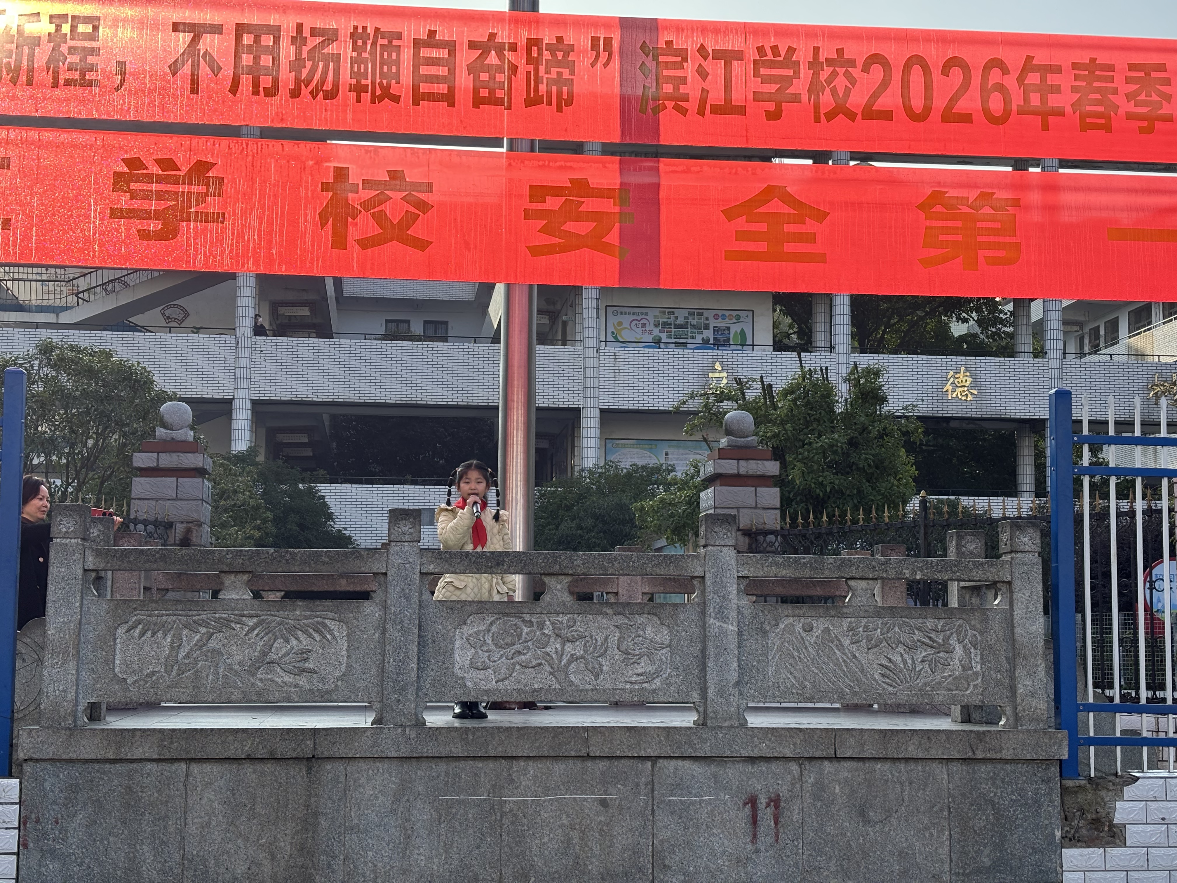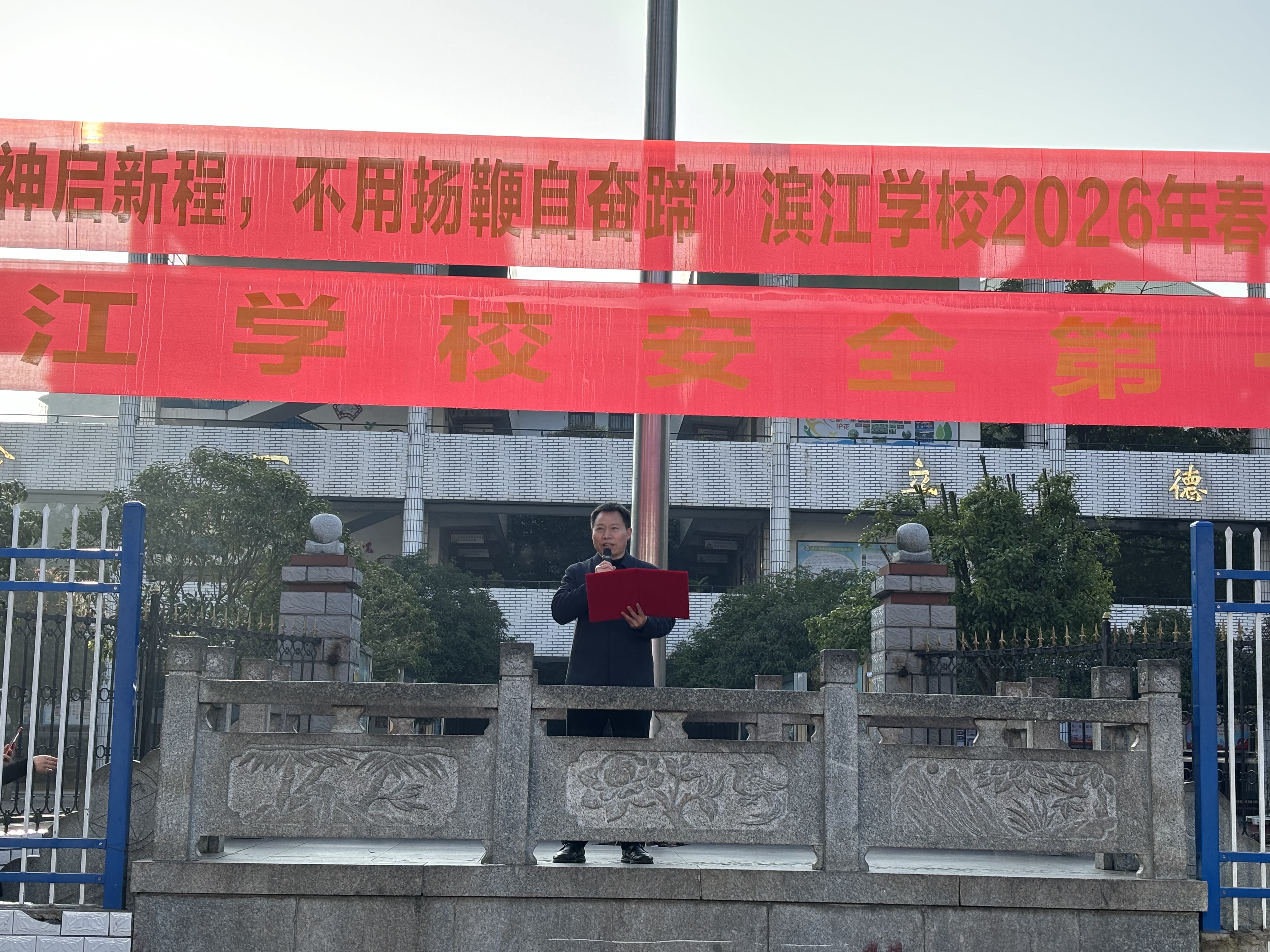 湖南教育报刊集团衡阳县小记者站(小记者 曾子颖)3月11日上午,衡阳县滨江学校全体师生齐聚操场,举行以“龙马精神启新程,不用扬鞭自奋蹄”为主题的春季开学典礼。整场典礼紧扣马年寓意,将奋进之志与家国情怀融入每一个环节,为新学期拉开昂扬序幕。