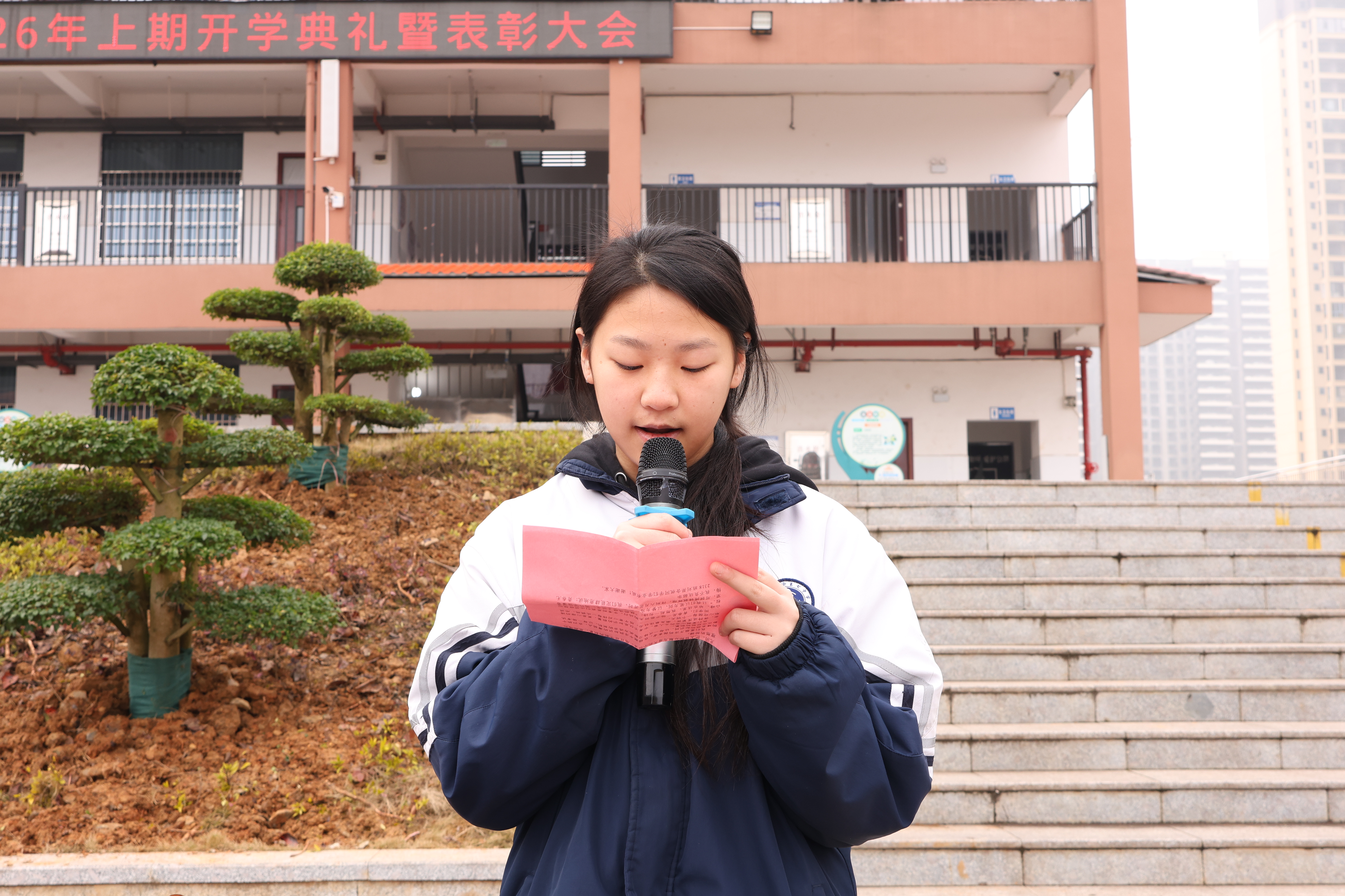 典礼不仅是回望,更是出征的序章。校长李宇欣在接受采访时表示:“新学期,学校将紧扣‘规范、创新、提质、赋能’的发展思路,抓实常规、深化改革。”李宇欣寄语全体学子以榜样为镜,向优秀看齐;期待教师坚守育人初心;呼吁家校同心同向,共同托举每一位七中学子的成长梦想。