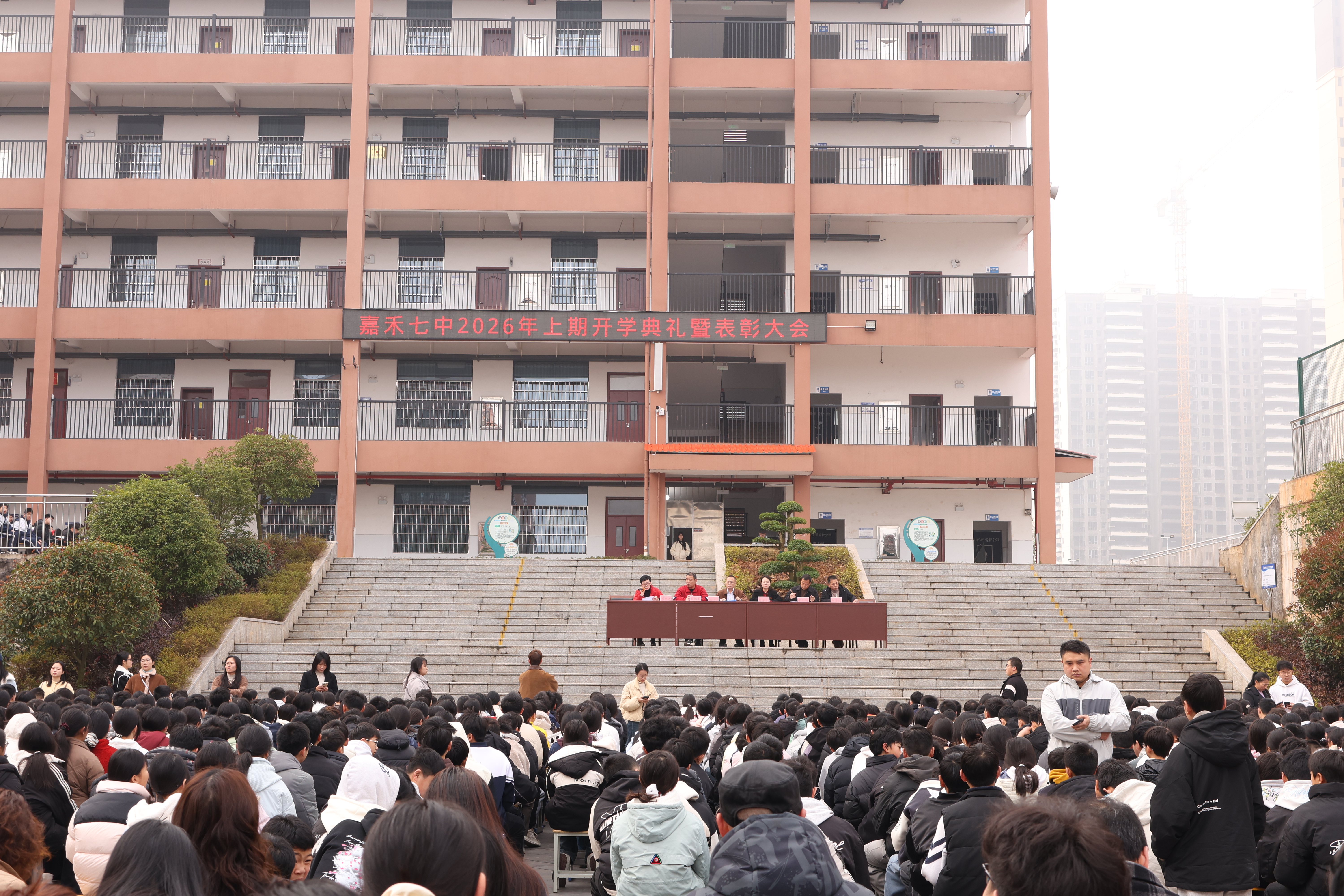 湖南教育报刊集团嘉禾县小记者站(小记者 郭紫晨)3月11日,嘉禾七中全体师生齐聚空坪广场,举行2026年上期开学典礼暨表彰大会。全校3400余名师生以昂扬姿态,共同为新学期的高质量发展聚力前行。