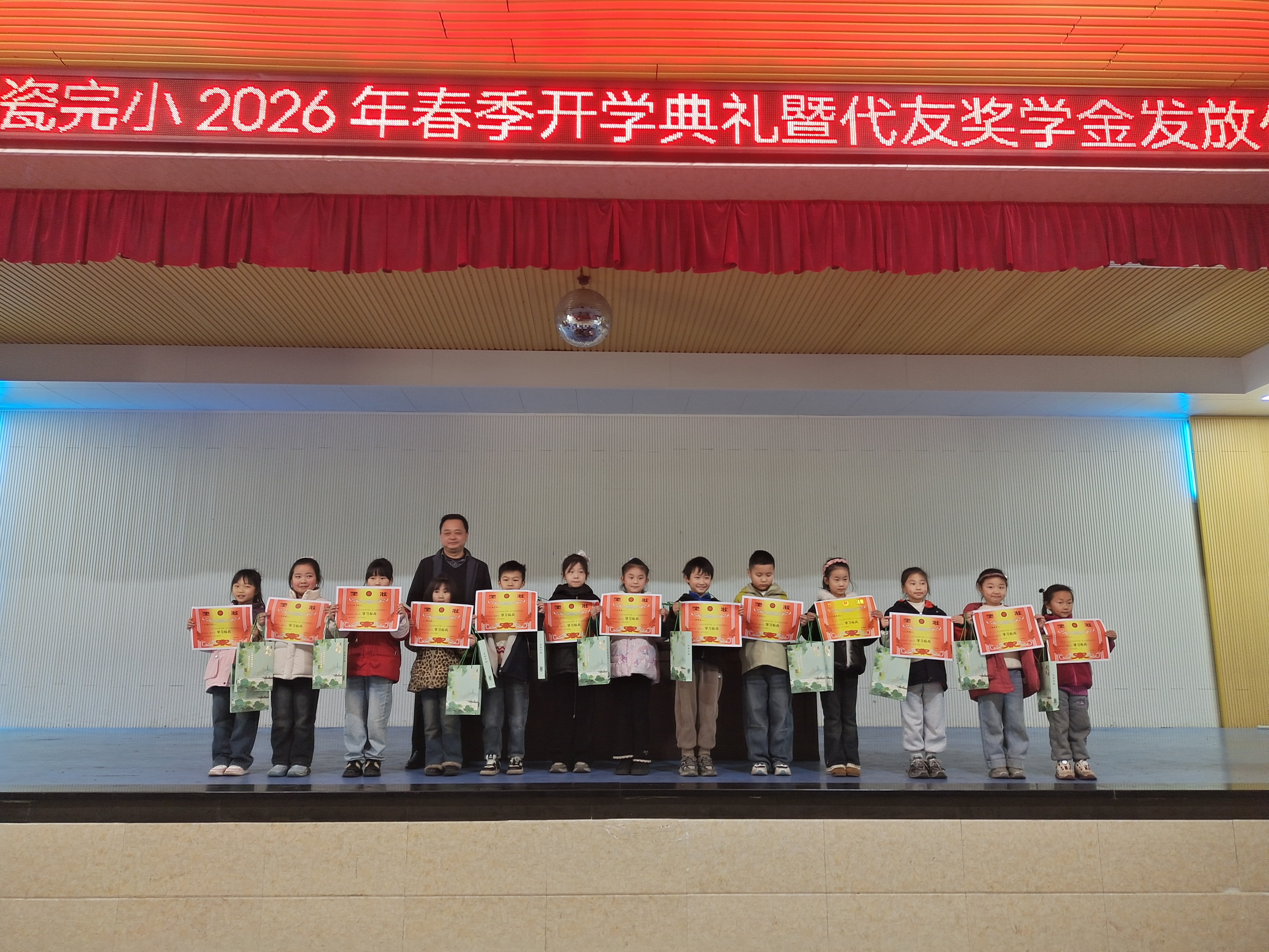 湖南教育报刊集团衡阳县小记者站(小记者 宋依恬)3月11日,界牌镇银瓷完小全体师生齐聚学校礼堂,举行2026年春季开学典礼暨“代友奖学金”发放仪式,共同开启新学期砥砺前行的崭新篇章。