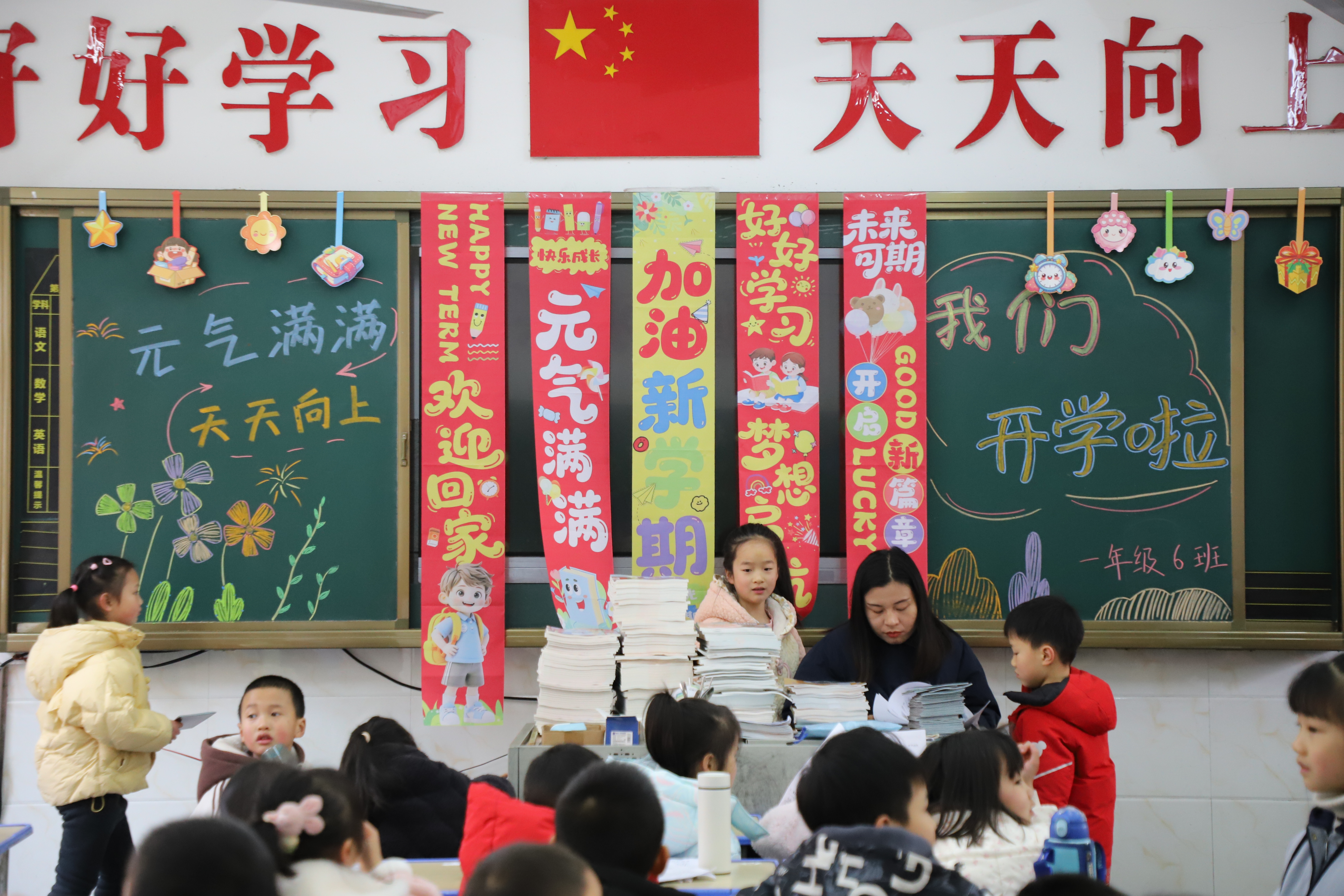 各班班主任早已提前到岗,将教室打扫得窗明几净,黑板上“欢迎回家”“新学期新起点”等暖心标语格外醒目。完成报到的同学们围坐在一起,兴奋地交流寒假趣事,分享新年收获,有的畅谈旅行见闻,有的交流阅读心得,教室里欢声笑语不断,处处洋溢着重逢的喜悦。不少班级还设置了新学期心愿角,同学们写下学习目标与美好期许,将心愿卡贴在墙上,让美好憧憬伴新学期同行。