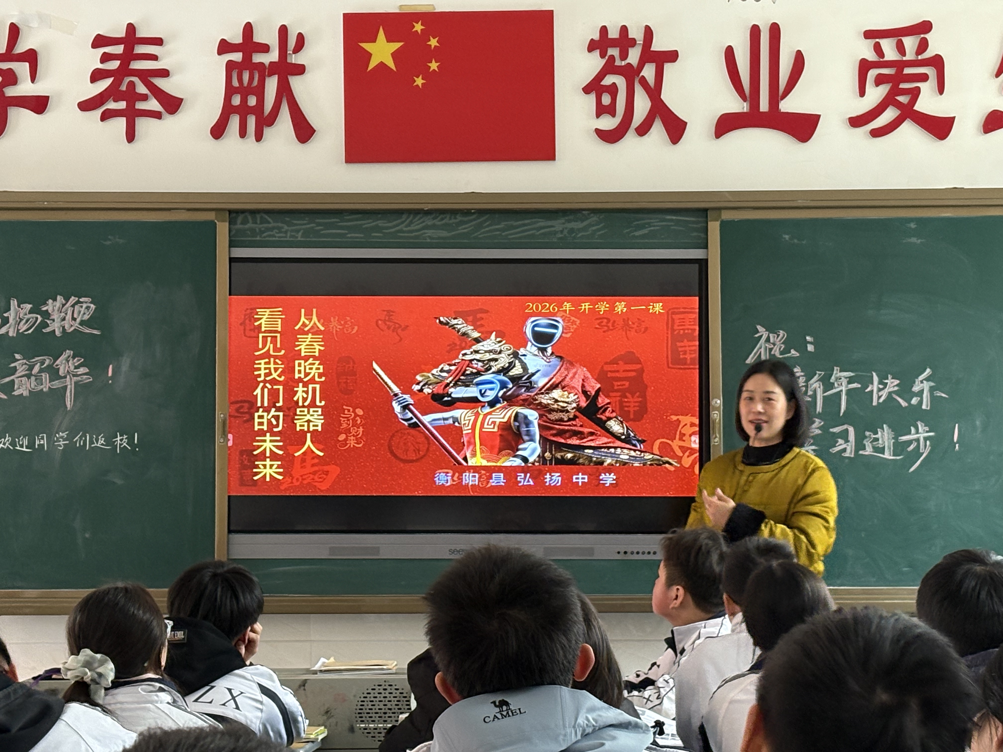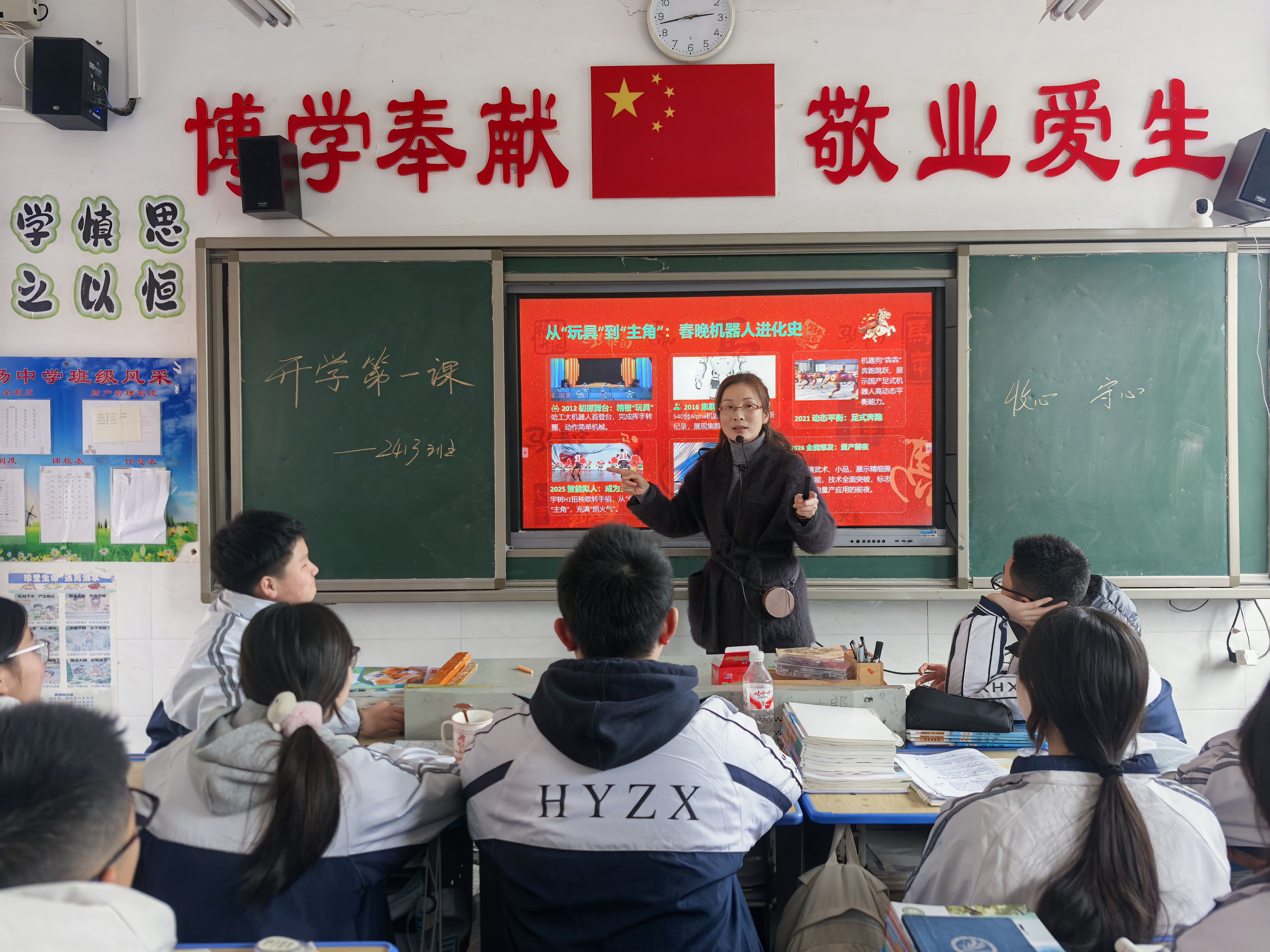 湖南教育报刊集团衡阳县小记者站(小记者 王瑞夕)3月4日,衡阳县弘扬中学迎来新学期。当日下午,全校各班级准时开展“开学第一课”主题班会活动,本次班会的主题是“从春晚机器人看见我们的未来”。