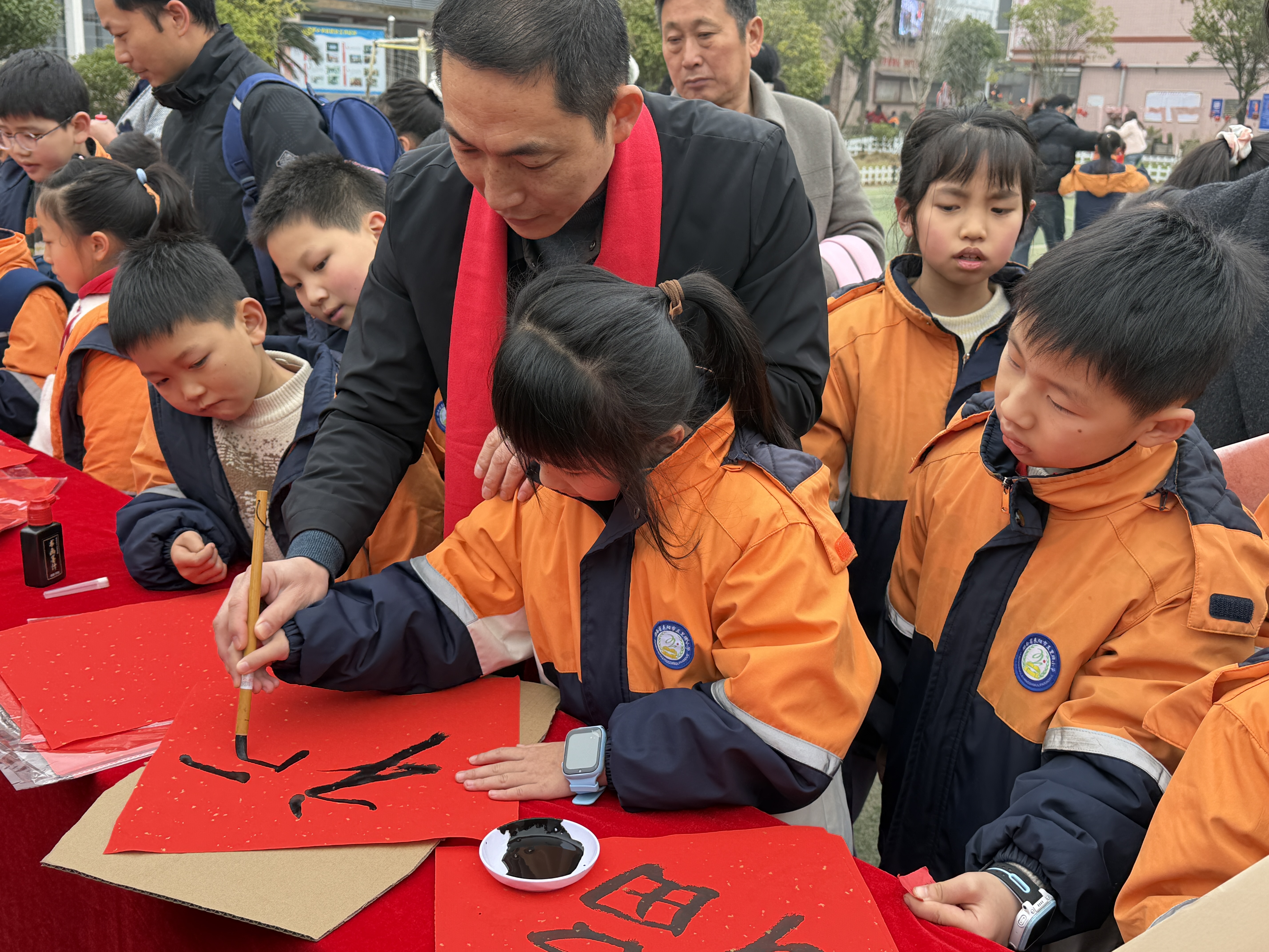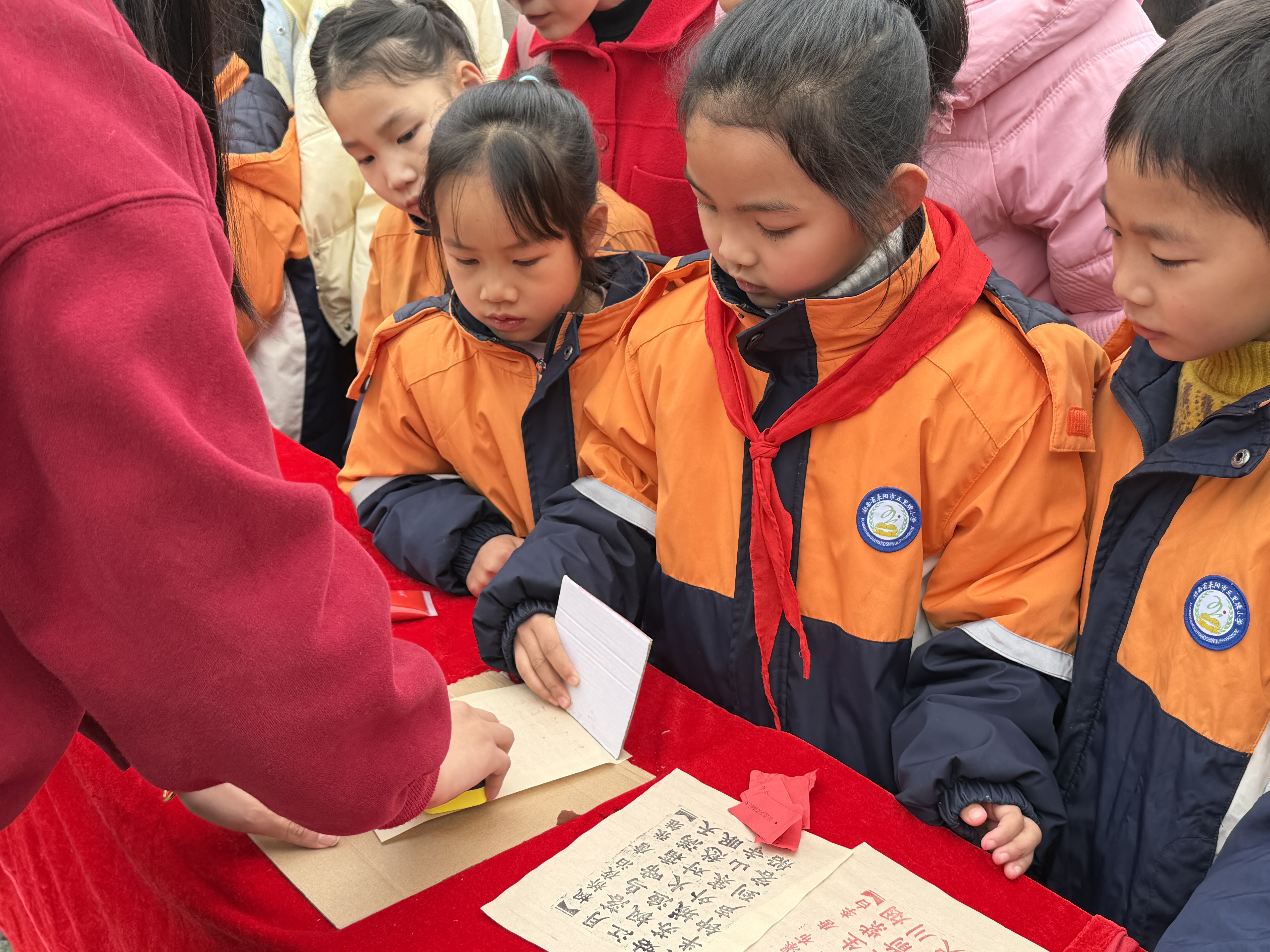 自由体验区更是热闹纷呈。在“福字拓印”和“活字印刷”区前,聚满了跃跃欲试的同学。大家亲手操作,感受传统技艺的魅力。一旁的书法体验区则安静而专注,“小书法家们”正提笔写下新年祝愿。校园里布置的寒假年俗实践作品展,同样吸引着众多目光。