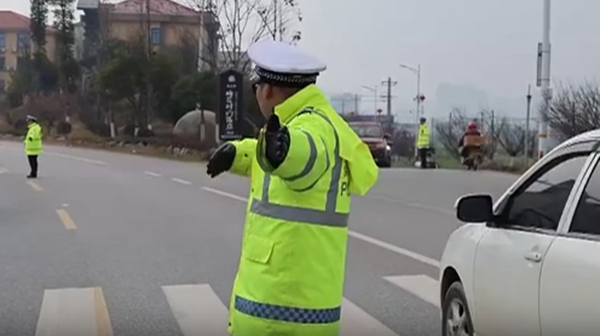 2月27日,在336省道与梅花村的交叉口,这里是进入县城的重点路段,车流持续攀升。交警在车流中规范指挥、有序疏导,引导来往车辆安全通行,及时纠正个别不文明交通行为,快速化解了路口的拥堵隐患。初春的冷风刮红了他们的脸颊,呼出的热气在冷空气中凝结成白雾,但他们的目光始终坚定,紧盯路面每一处动态。