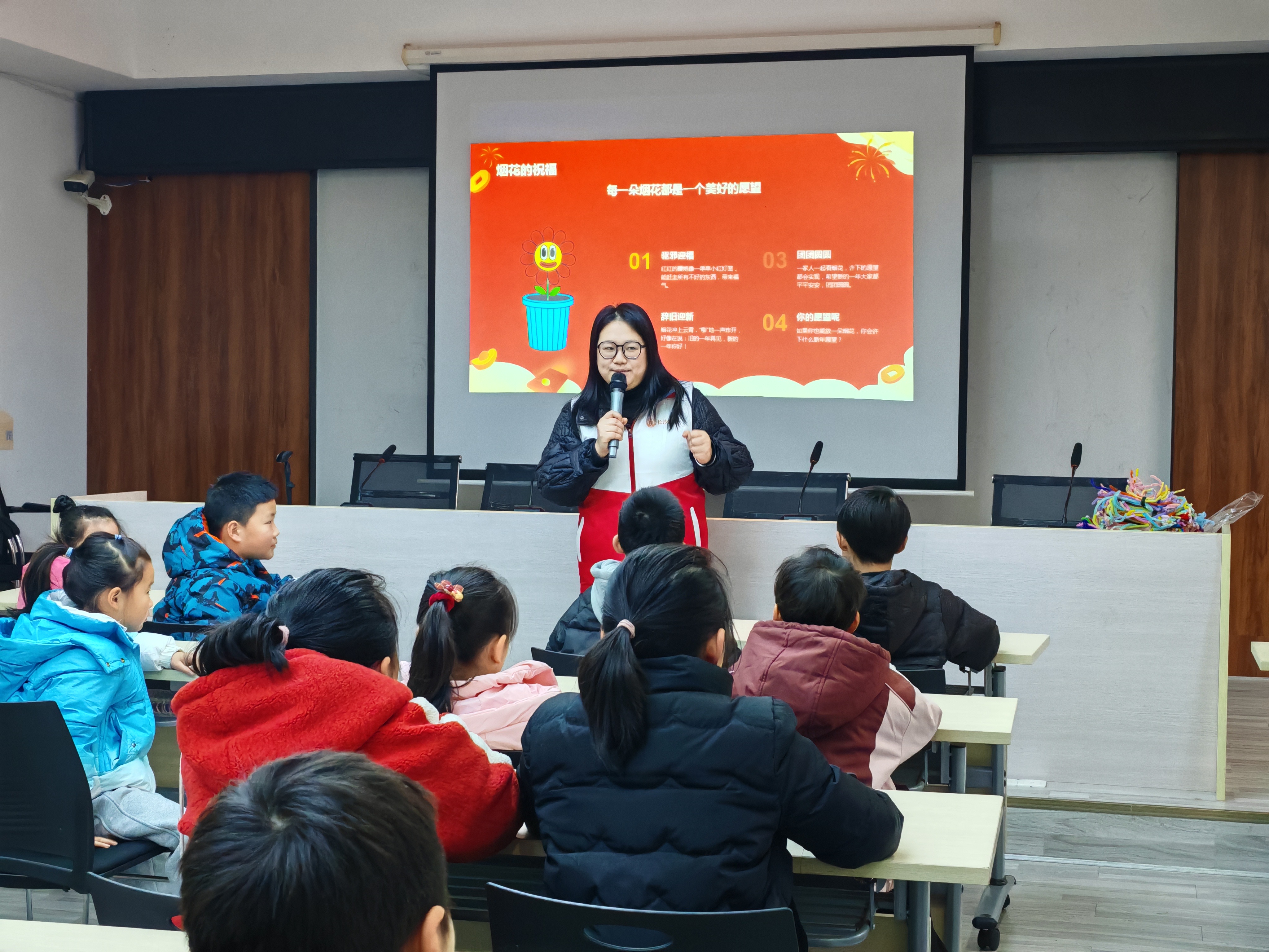活动伊始,《噼啪兔的年味冒险》原创故事温情开讲。志愿者老师绘声绘色地讲述,将孩子们带入充满年味的童话世界,也让大家在趣味聆听中,读懂了鞭炮驱邪、中国结纳福的非遗寓意,现场不时响起孩子们的惊叹与欢笑。