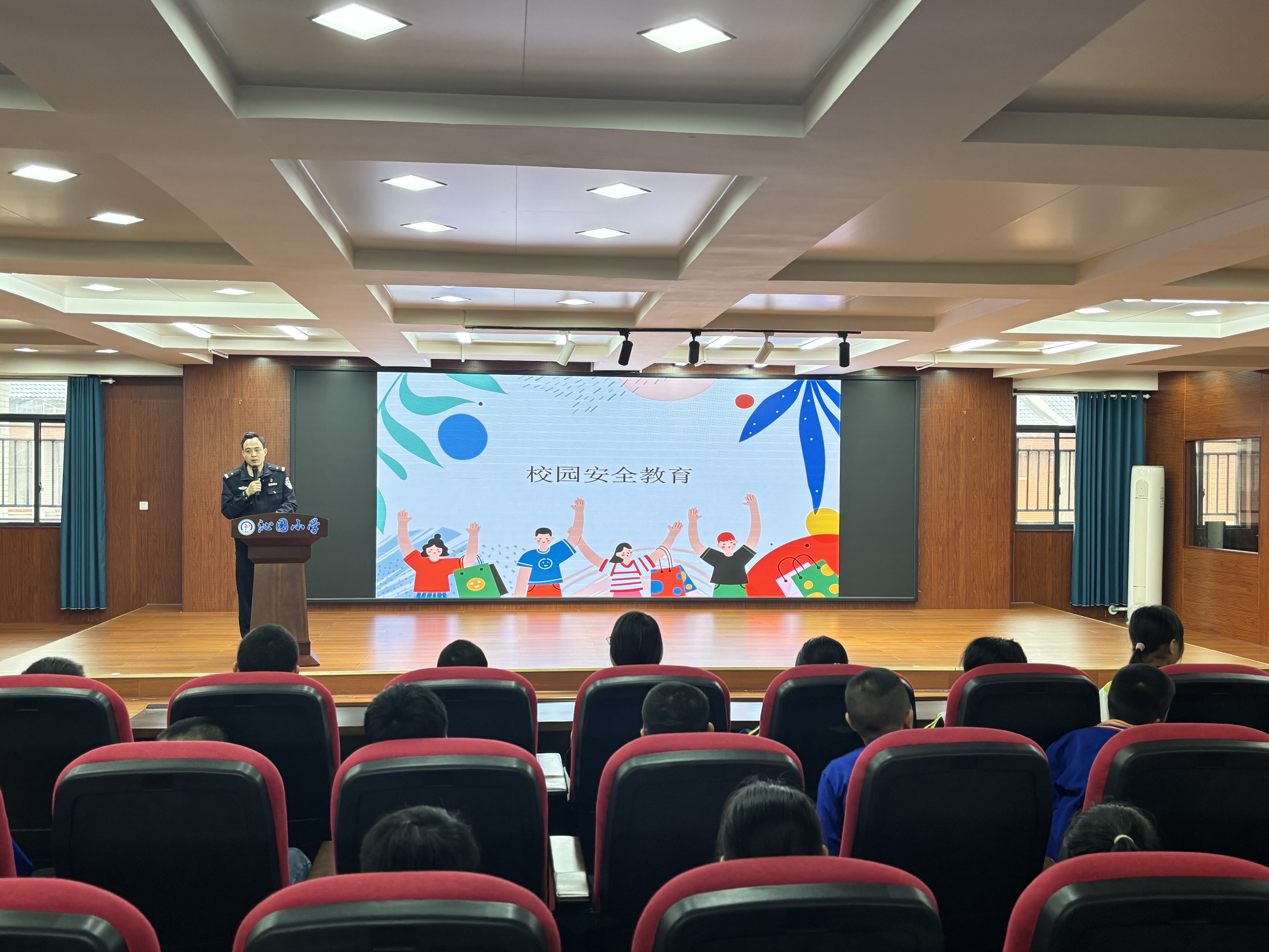 宣讲中,王警官紧扣校园安全重点,围绕防欺凌、防侵害、防暴力三大主题,结合小学生认知特点,用通俗易懂的语言、真实鲜活的典型案例,以案释法、以法论事。他详细讲解了校园欺凌的定义、表现形式及危害,告诫学生坚决不做欺凌者、不做旁观者,严守法律底线;针对防范不法侵害,梳理实用安全守则,细致传授自我保护技巧,叮嘱学生牢记“安全第一”,遇到危险及时求助;同时引导学生遇事冷静克制,杜绝冲动施暴,学会用文明合法的方式化解矛盾,共建和谐校园。