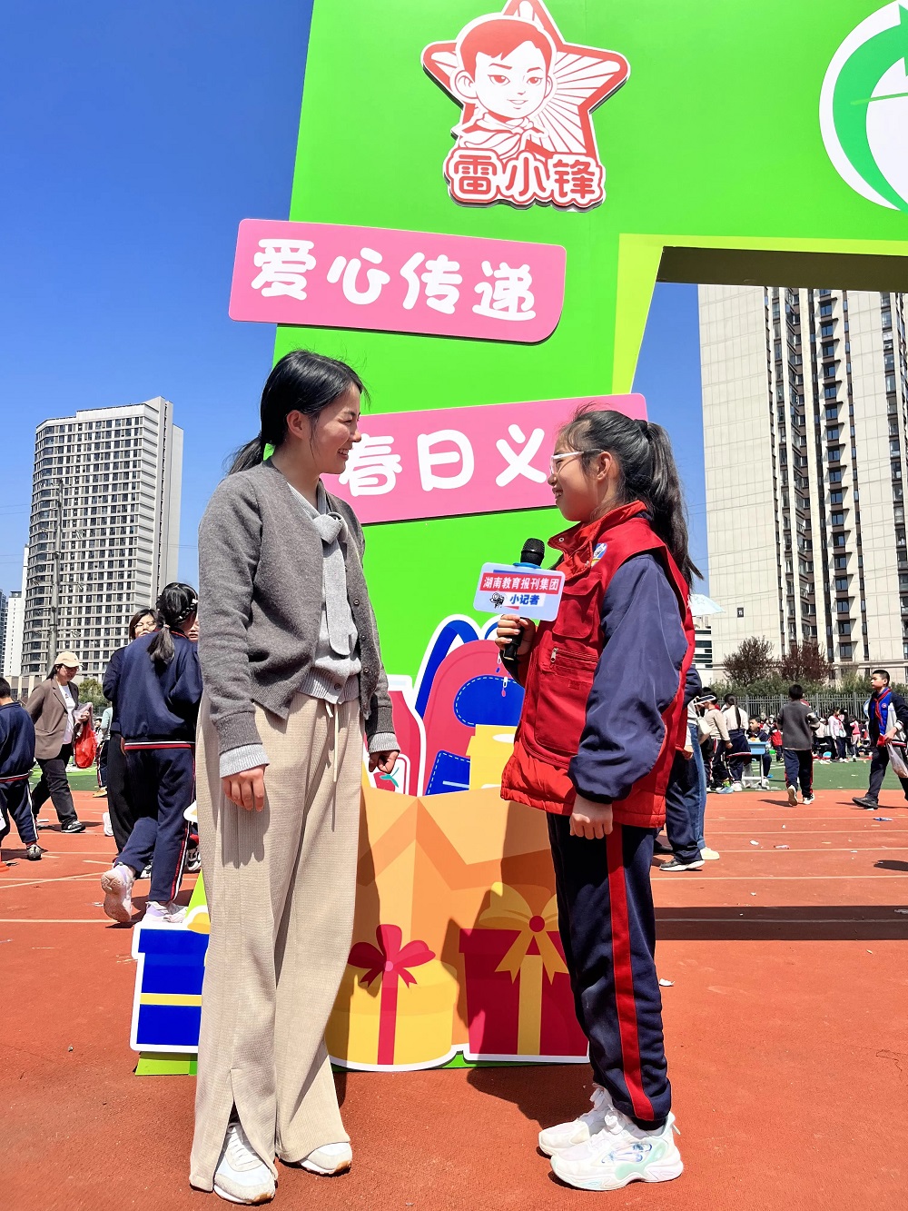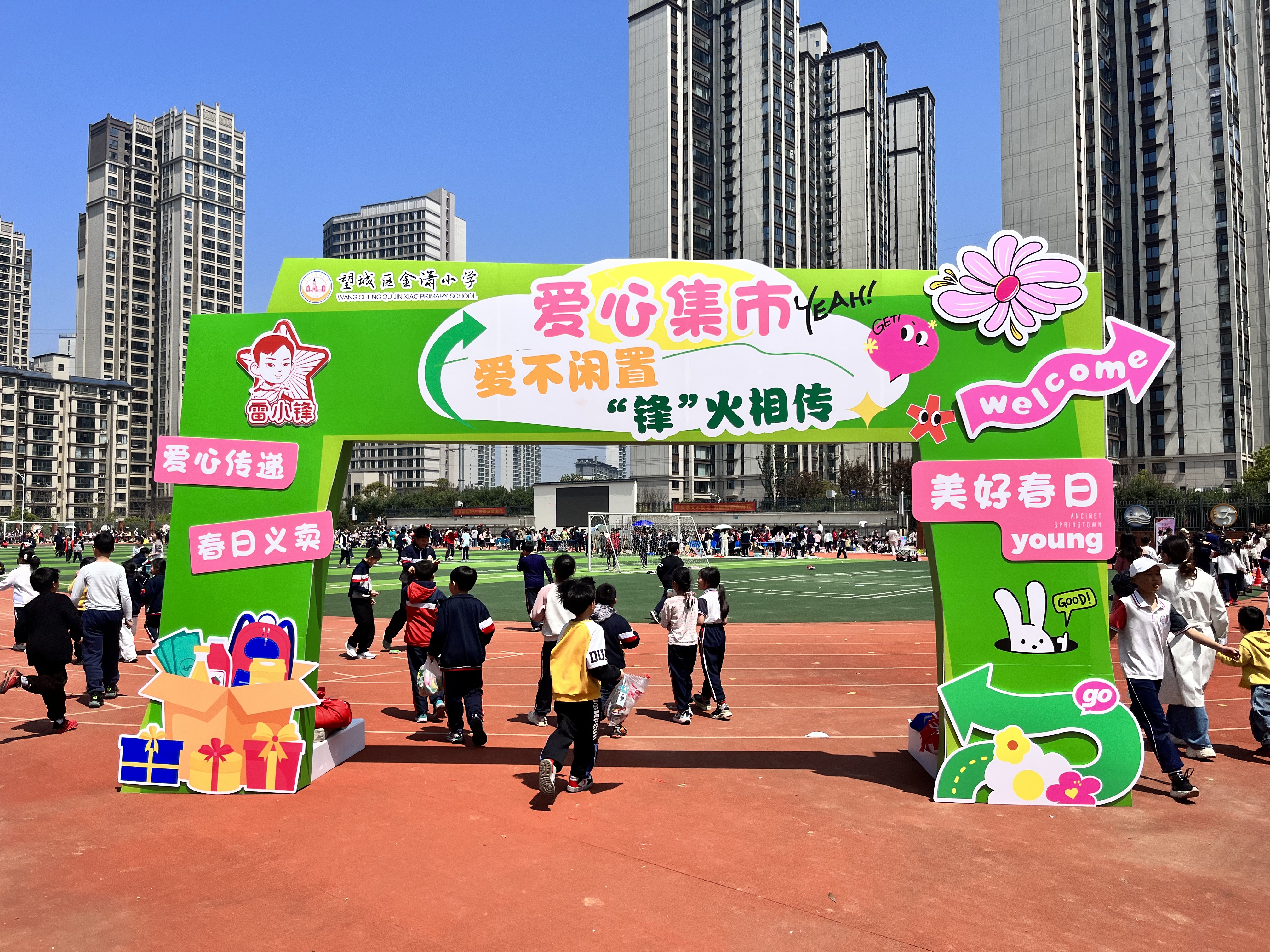 湖南教育报刊集团望城区小记者站(小记者 张可馨)4月1日下午,金潇小学田径场上热闹非凡,欢声笑语此起彼伏。一场以“爱不闲置,‘锋’火相传”为主题的爱心义卖活动正在这里温情上演。全校一至六年级师生、家长志愿者共同参与,用实际行动传递温暖,践行雷锋精神。