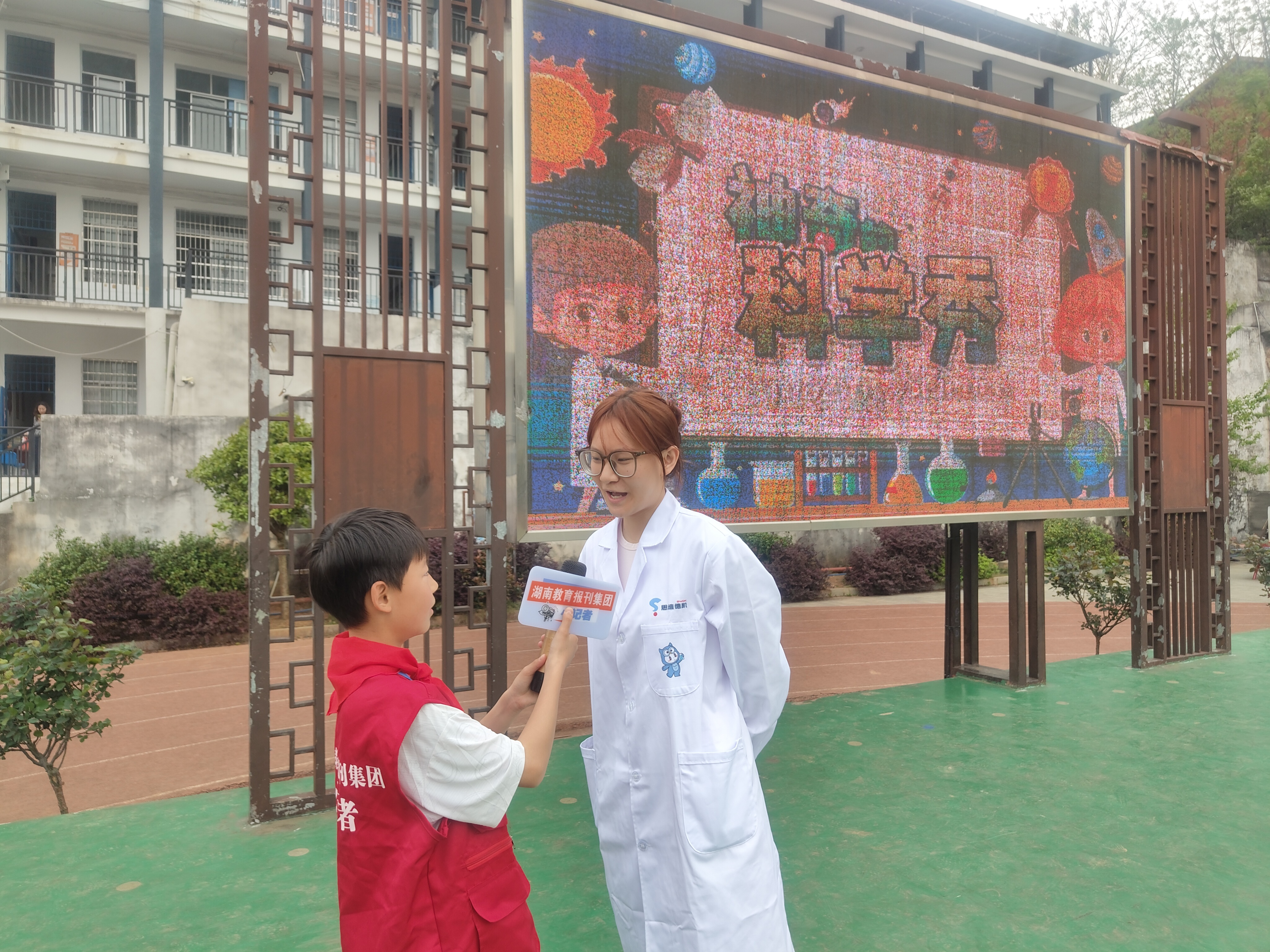 活动开始前,有同学向学校校长唐海晖提问:“为什么要给我们办这场科学秀呀?”唐校长说:“课本里的知识就像藏在盒子里的宝贝,科学秀就是打开盒子的钥匙!希望你们能亲手摸到科学的温度,爱上探索,让大家‘玩中学’,把抽象的知识变成看得见、摸得着的惊喜。”