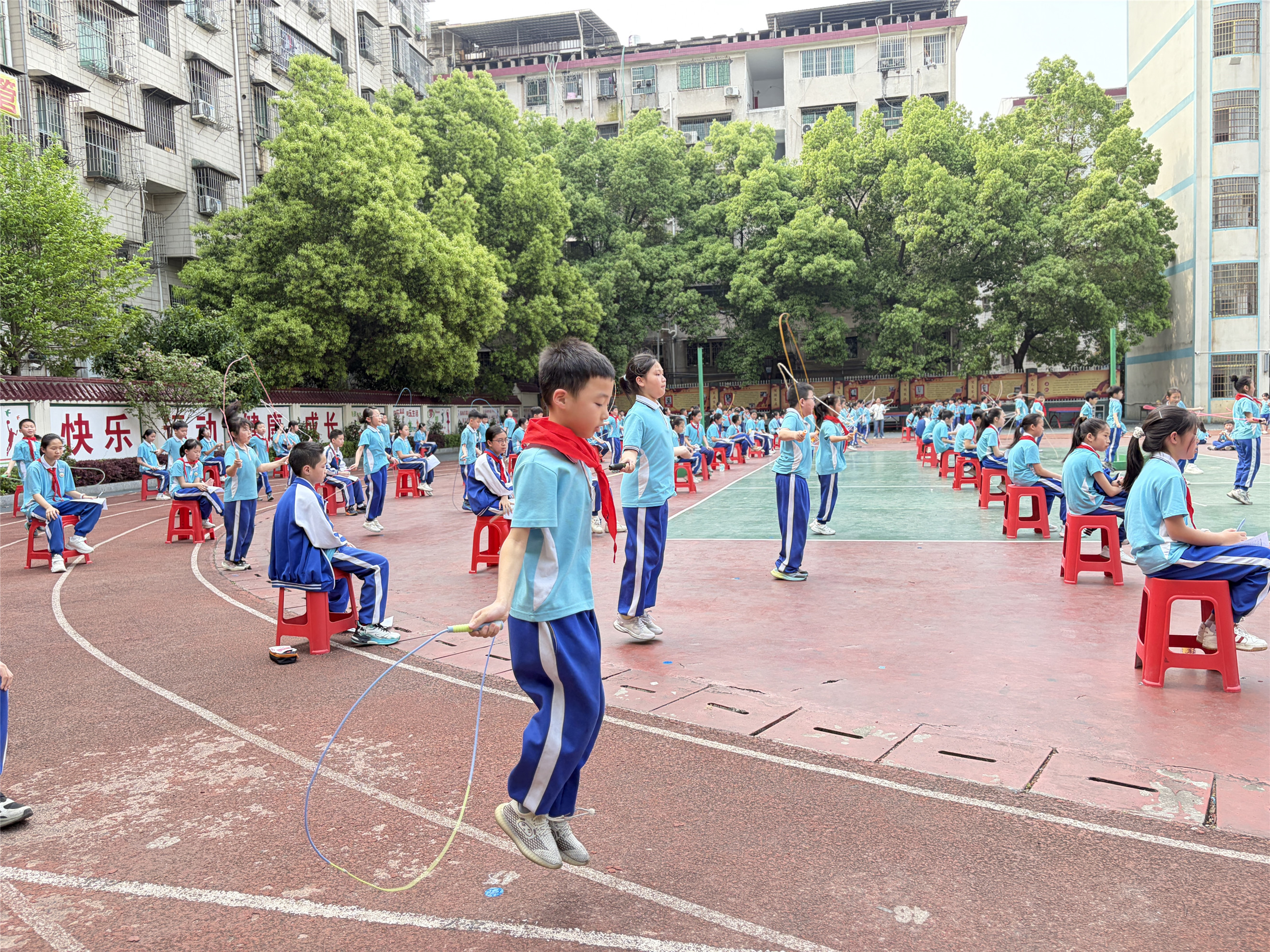 “跳绳‘班超’争霸赛是校园体育的创新实践。”该校分管体艺工作的副校长周水英对小记者说,“它打破了传统竞技体育‘少数人参与、多数人旁观’的局限,以班级为单位,学生全员参与,每名学生都是赛场的主角。以绳为媒,以赛育人,这场‘班超’争霸赛的胜负从不是唯一追求。在协作中学会沟通,在挑战中突破极限,在规则中涵养体育精神,在运动中收获健康与快乐——这才是体育育人的真正价值。”