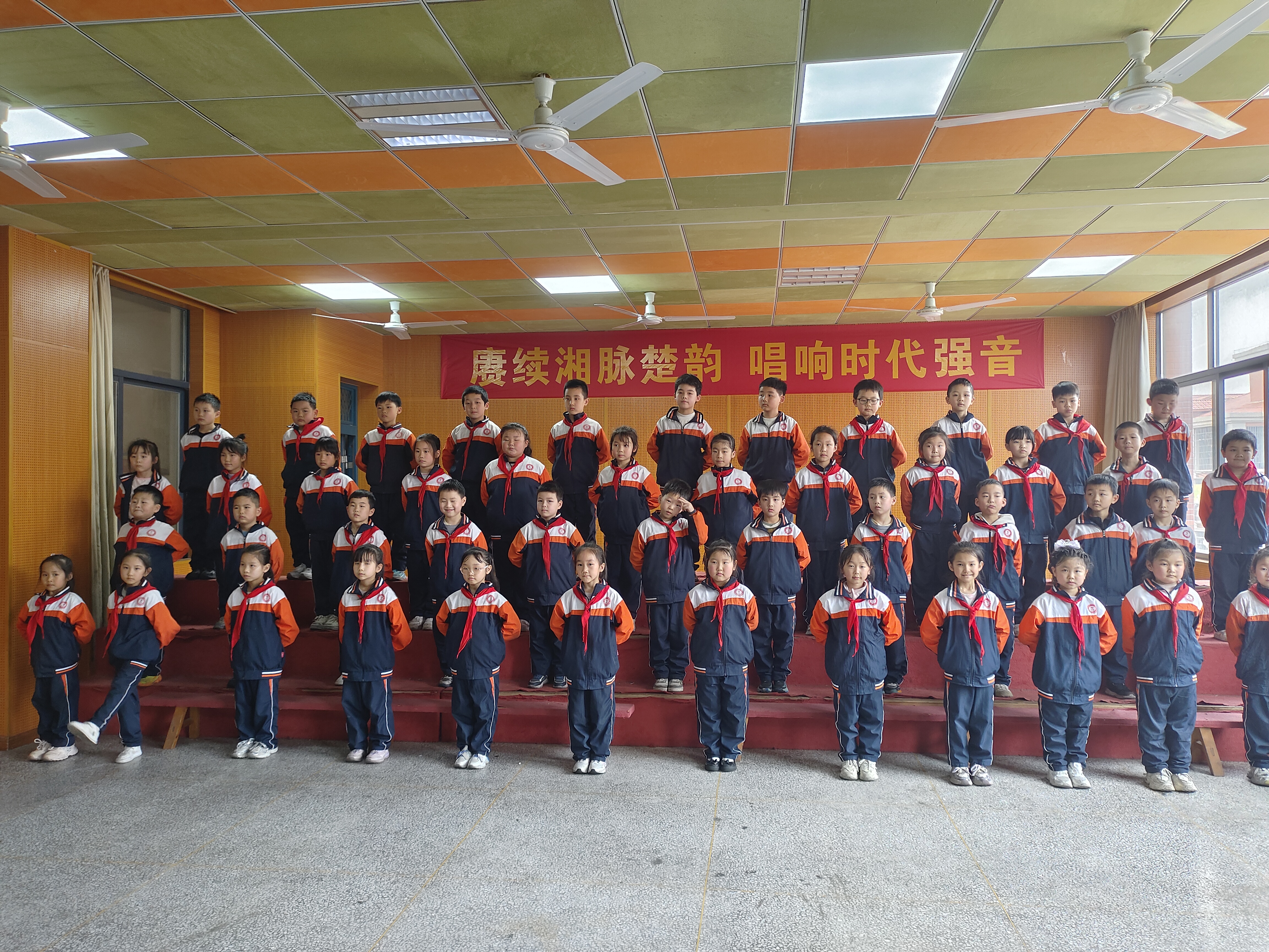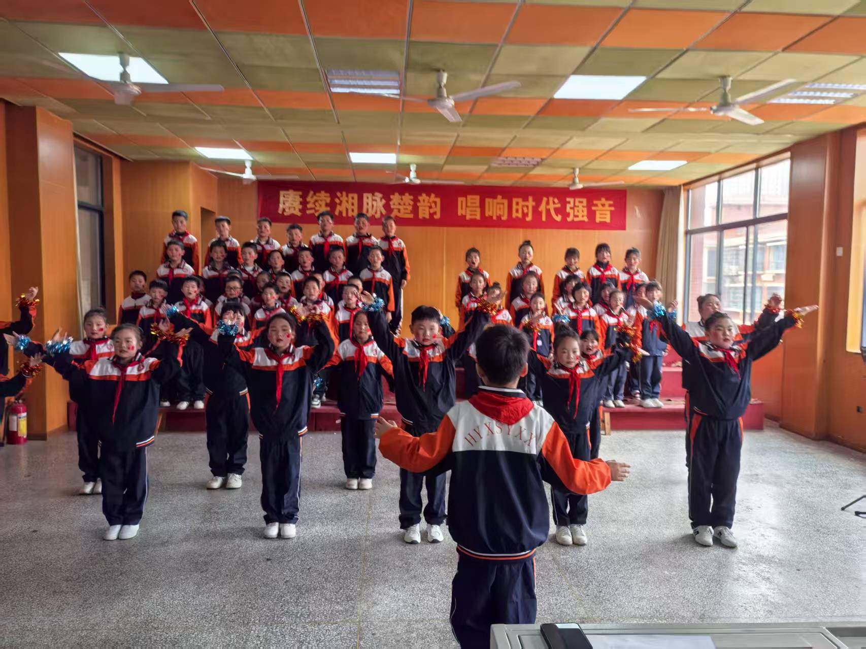 比赛在悠扬的音乐声中拉开帷幕。率先登场的班级精神抖擞,队列整齐,一首清脆嘹亮的歌曲瞬间点燃了全场气氛。随后,各班级轮番上阵,从经典红歌到校园民谣,从爱国曲目到励志金曲,每一首歌都被同学们演绎得各具特色。有的班级用清亮纯净的童声打动人心,有的班级尝试分声部合唱,高低错落间展现出良好的配合;还有的班级在演唱中加入了精心设计的动作和队形变化,台上台下互动频频,掌声与喝彩声此起彼伏。