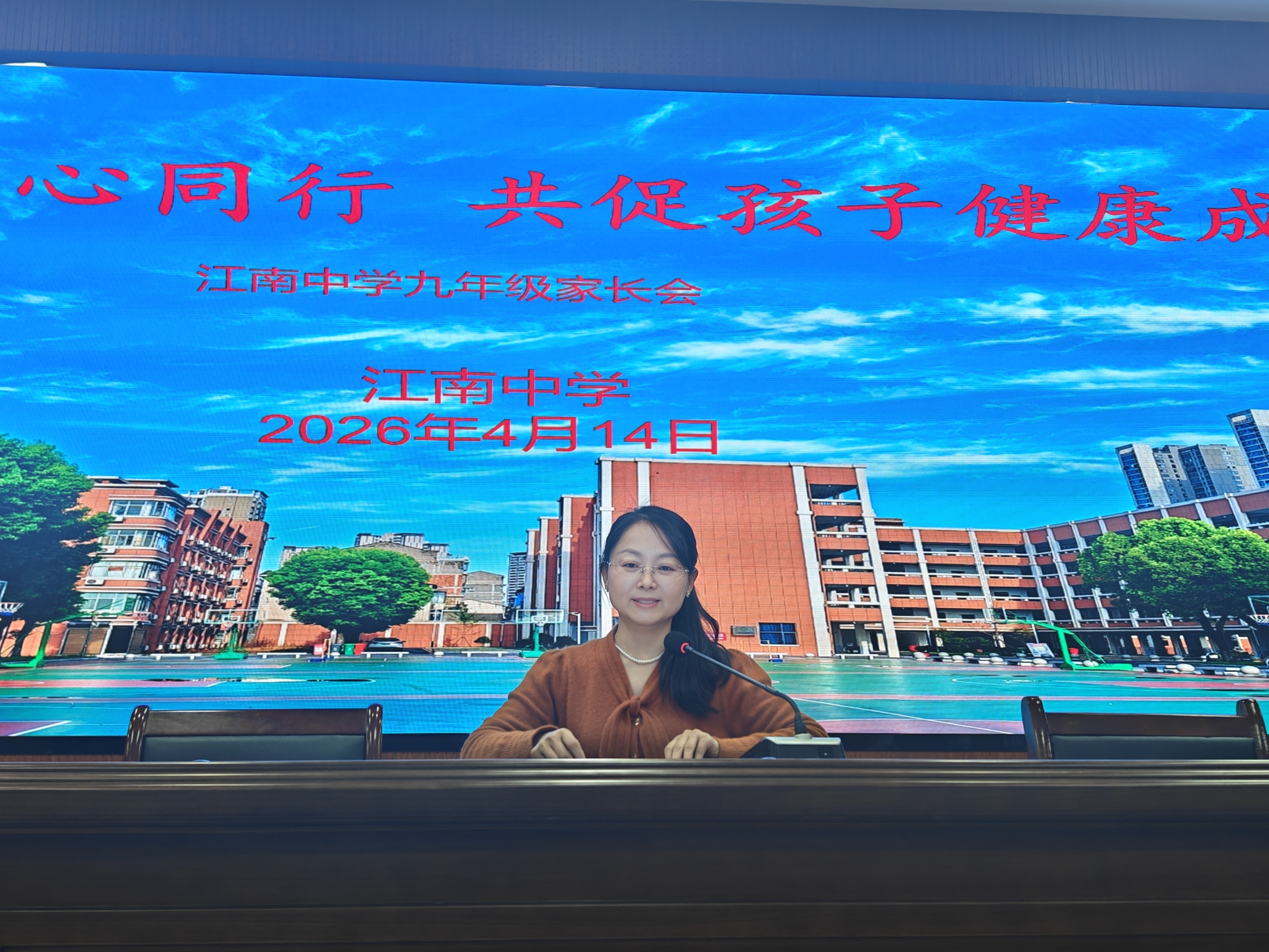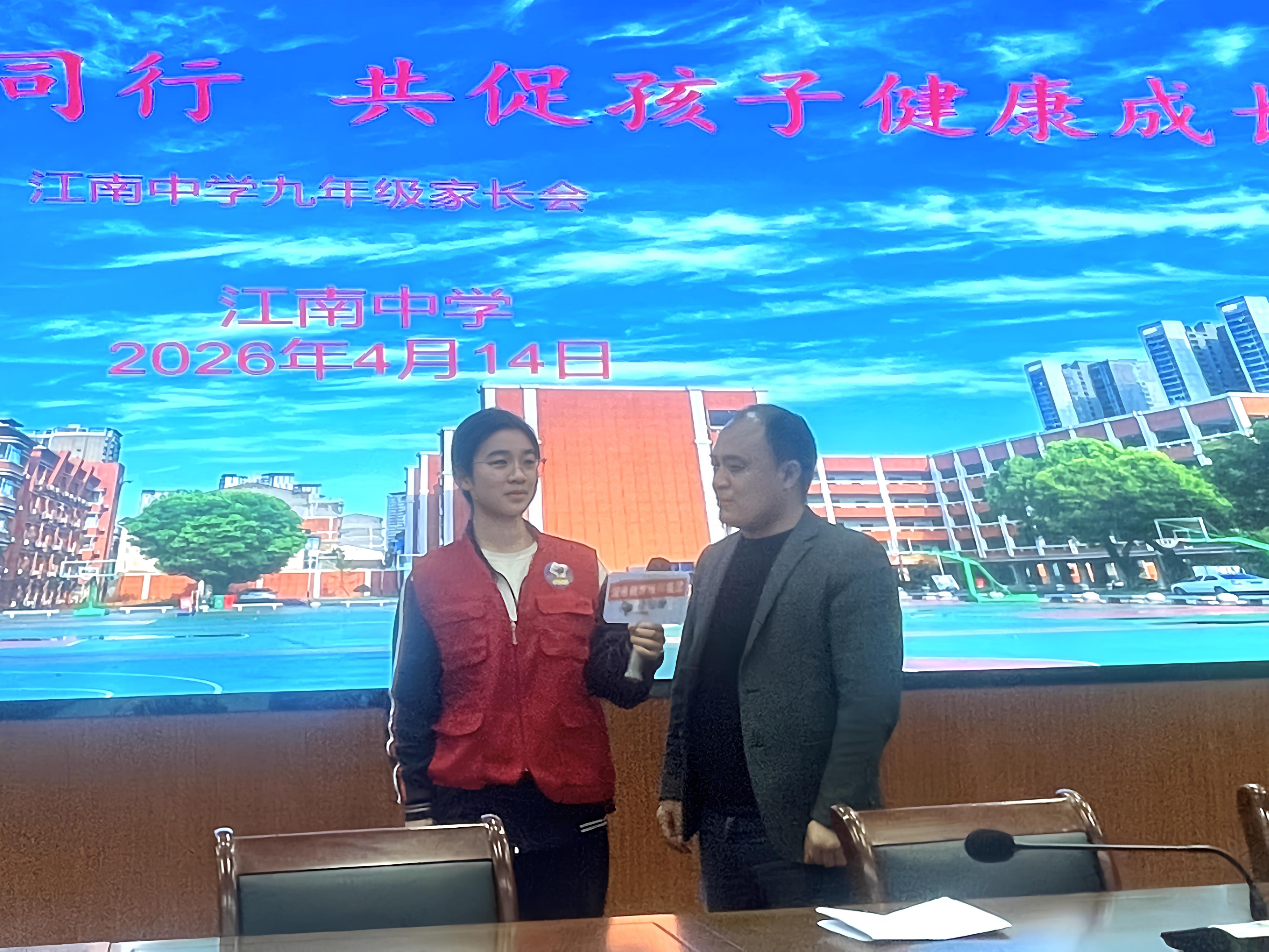 江南中学副校长谈长明以“家校同心同行,有效应对中考”为主题讲话。他指出,中考冲刺是知识、心态、习惯与家庭支持的综合较量,提醒家长做好稳心态、抓习惯、跟节奏这三件关键事,避开只看分数、过度焦虑、放任或包办这三大误区,紧跟学校三轮科学复习计划,信任学校,陪伴孩子。