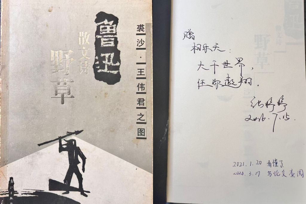 人文学院2022级本科生相乐天《野草》的扉页上,留着三处跨越了十年的字迹。