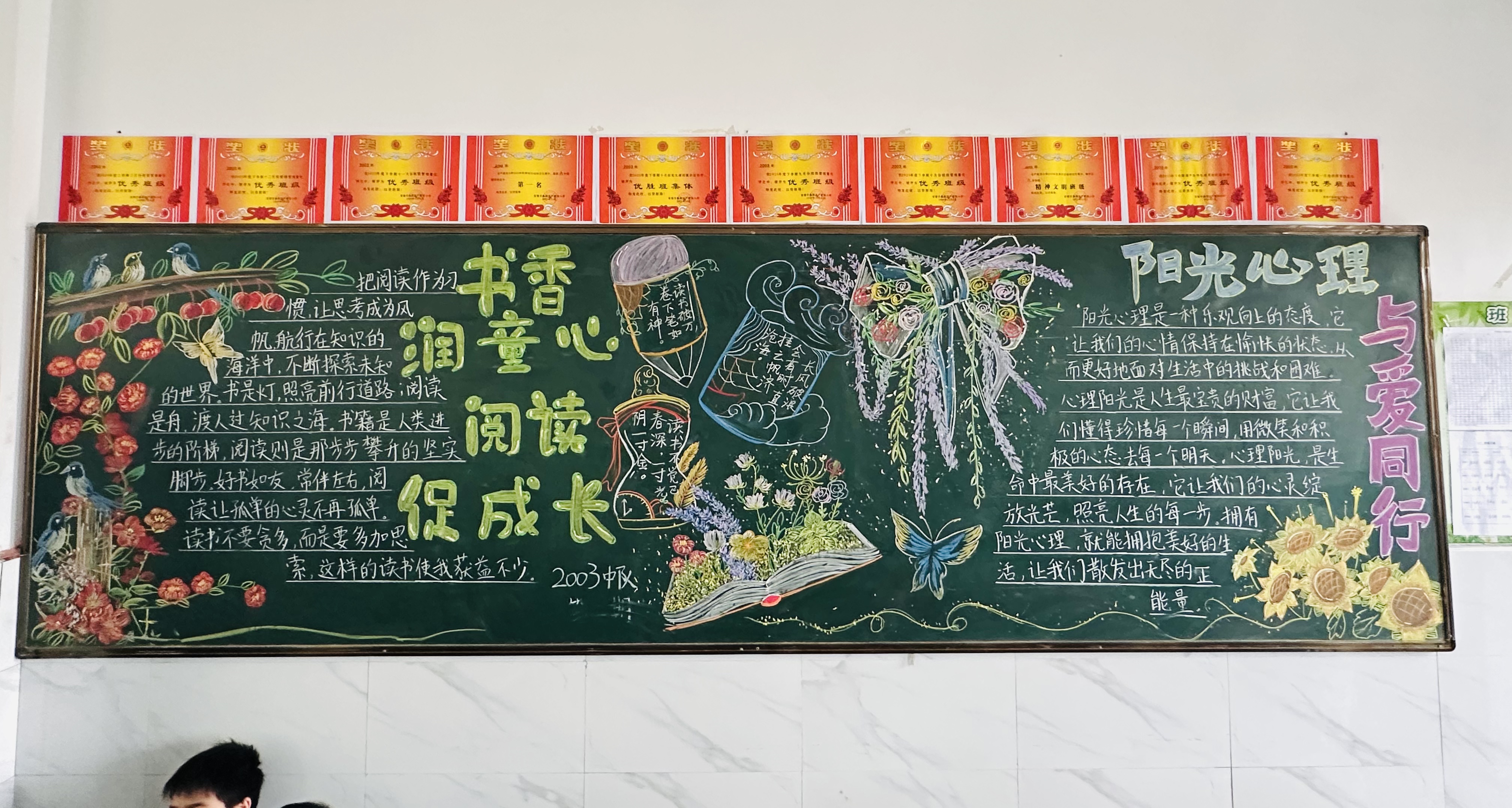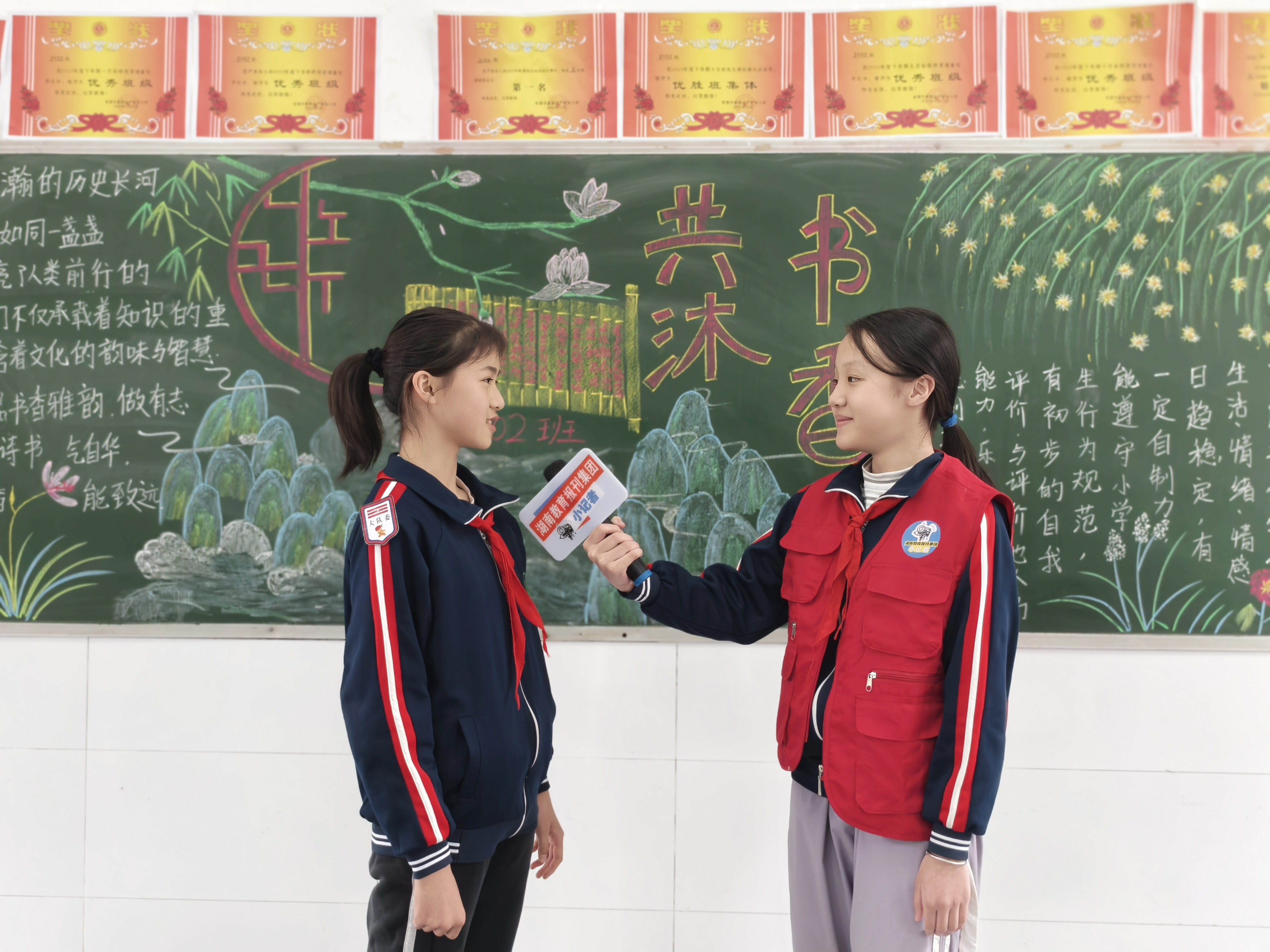 为了办好读书主题黑板报,同学们分工合作,一起搜集读书名言、分享好书推荐。大家一笔一画认真创作,在这个过程中,也读懂了“读书破万卷”的深刻含义。