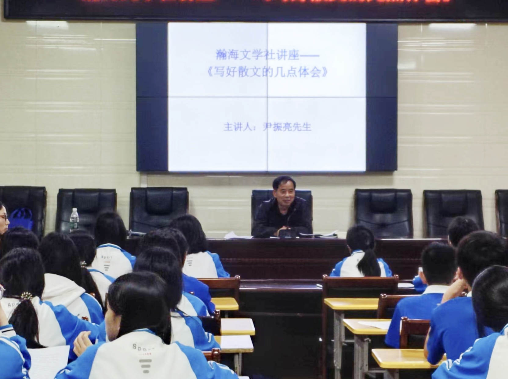 湖南教育报刊集团嘉禾县小记者站(小记者 李锦秀)笔尖为炬,文字为光;春风送暖,文韵流芳。4月22日,嘉禾五中致行楼一楼大会议室暖意涌动,中国作家协会会员、嘉禾县文联原主席、县作协原主席尹振亮先生走进嘉禾五中,结合自身数十年文学创作经验,他以亲身写作心路为引,用朴实真切的话语,为全体师生拆解散文创作奥秘,分享散文写作的独家心得。