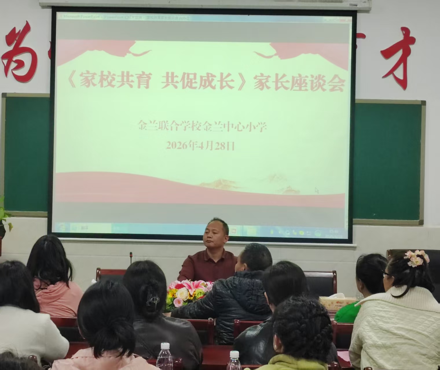 湖南教育报刊集团衡阳县小记者站(小记者 江紫妍 黄芷珊)4月28日下午,衡阳县金兰镇中心小学举行“家校共育,共促成长”家长座谈会,邀请家长代表齐聚校园,与学校领导、老师共话学生教育与成长事宜。