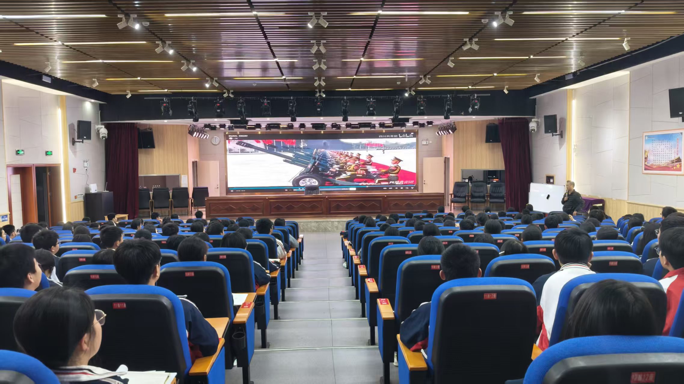 刘诗学主任以“英雄丰碑”“大国重器”“红色基因”“继往开来”四个篇章展开讲述。当大屏幕上出现“81192,请返航”的画面时,全场肃静。刘主任动情地说:“2001年4月1日,飞行员王伟用生命捍卫了祖国领空。”