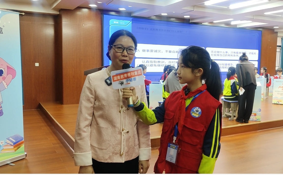 活动现场,小记者对参赛学生与衡南县教育局教研室副主任陈玲玲进行了采访。参赛选手表示,通过备赛认真阅读了推荐书目,不仅增长了知识、提升了阅读能力,还锻炼了胆量与应变能力,在团队协作中收获了友谊,更加热爱阅读。陈玲玲主任指出,举办本次竞赛是落实青少年学生读书行动、推“书香校园”建设的重要举措。活动以赛促读、以读润心,引导学生爱读书、读好书、善读书,在阅读中拓宽视野、涵养品格,让阅读成为伴随终身的良好习惯,为学生全面发展筑牢文化根基。