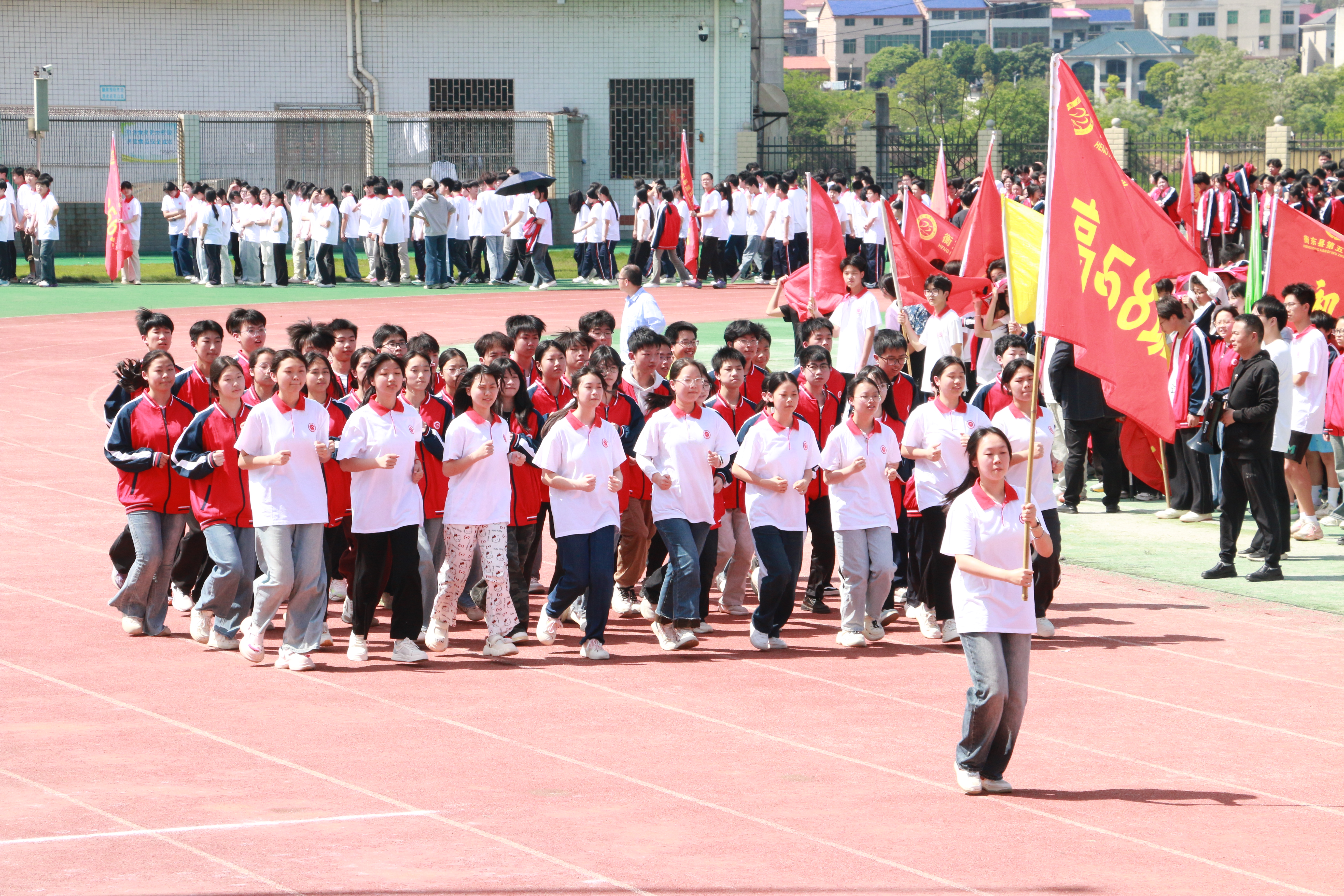 湖南教育报刊集团衡东县小记者站(小记者 刘钥露) 春风拂面,朝气满盈。4月25日,衡东县第五中学“活力青春,健康同行”主题跑操比赛在校田径场举行。
