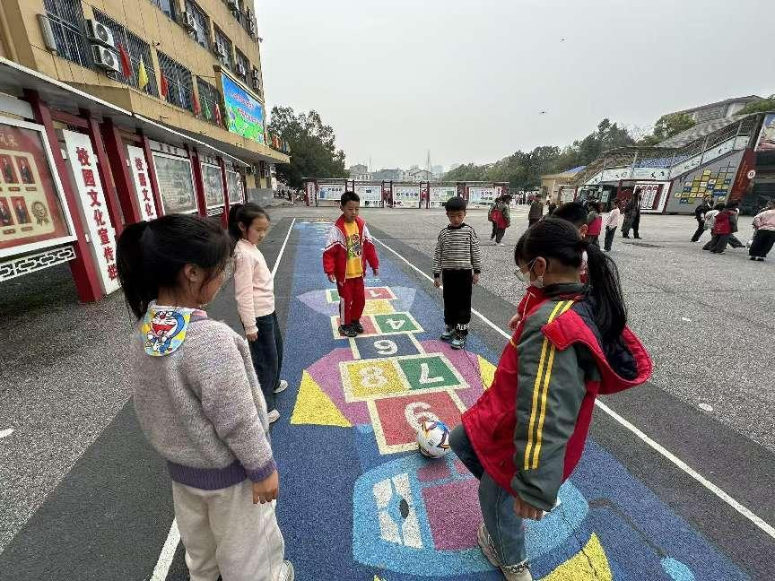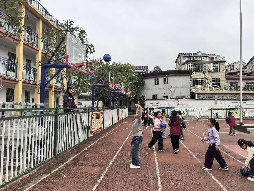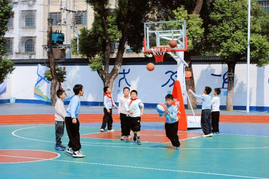 时间有了,场地怎么办?各校开动脑筋“见缝插针”。市一完小、市五完小、市九完小等学校,在围墙旁加装简易篮球架,把闲置角落变成投篮练习区;市八完小、市二完小将教学楼后的狭长空地改造成“迷你足球道”;羊楼司中学把当地“瑶文化”编进大课间,利用树荫下的空地,开辟竹竿舞游戏区;机关幼儿园、云水湾幼儿园在走廊尽头铺上软垫,设置“小小投篮角”。