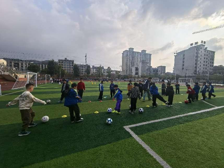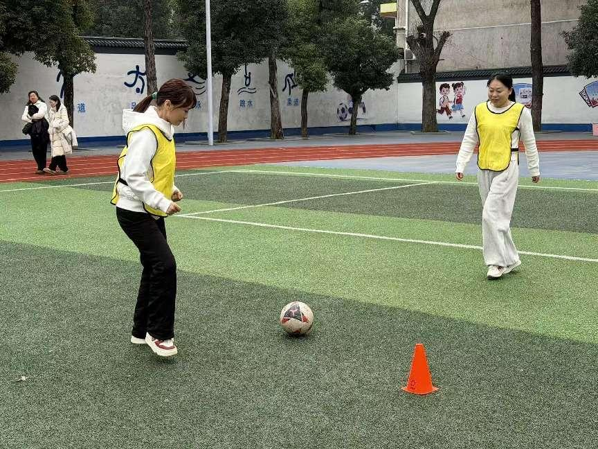 今年寒假,市三完小的操场上出现了一幕有趣的画面:该校党总支书记马丽华抱着足球学带球,语文老师刘淑敏在练习投篮,数学老师陈珊在跳绳区挥汗如雨。“以前站在场边只会喊加油,现在我至少知道什么叫‘踩单车’了!”李兰芹擦着汗,笑得像个孩子。
