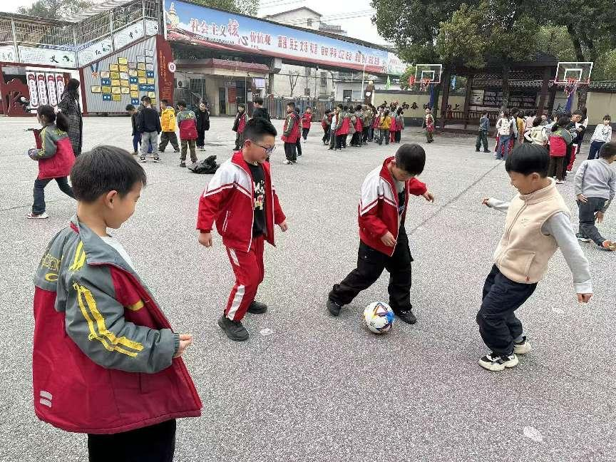 晨练只是开始。临湘市严格落实“每天锻炼两小时”,将课间统一延长至15分钟,鼓励学校因地制宜。市一完小创新整合课间时间,“攒”出40分钟大课间。课间铃声响起,孩子们涌出教室,走廊上跳房子,树荫下踢毽子,围栏边的小型足球场上“迷你对决”正酣。“以前课间只能趴在桌上,现在玩法多了,每天都盼着课间快点到!”四年级学生李诗语擦着汗,笑得格外灿烂。课后服务时间同样被盘活,各校成立各类体育社团,孩子们可以根据兴趣自由选择。