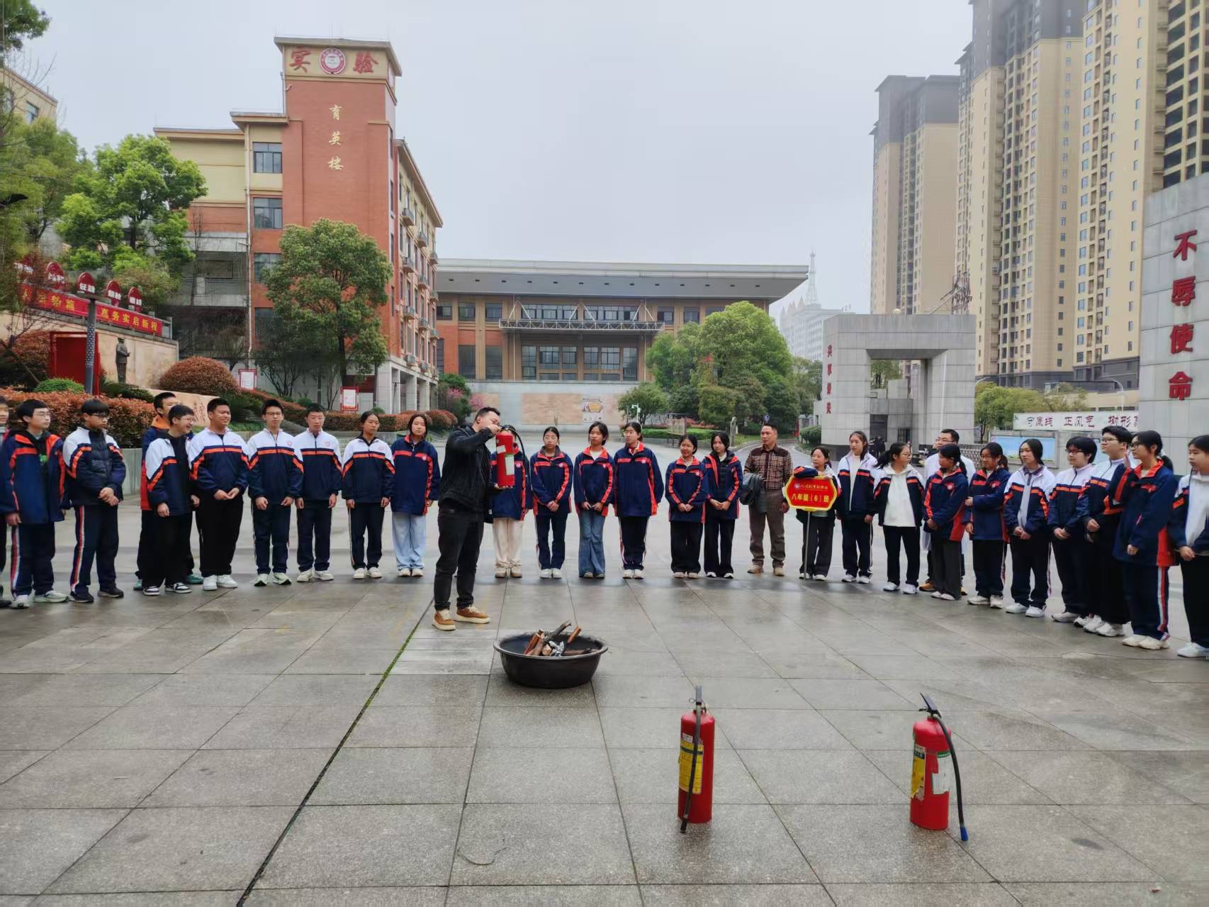 与此同时,为了提升学生的消防安全意识和实践能力,学校安保处的相关人员也在现场组织了消防安全演练。他们耐心指导学生如何正确识别和使用不同类型的灭火器,并组织了模拟灭火演练。在专业人员的引导下,学生们学习了火灾初期的应急处置流程和疏散逃生技巧,有效掌握了应对突发火灾的基本技能,增强了临危不乱的心理素质。