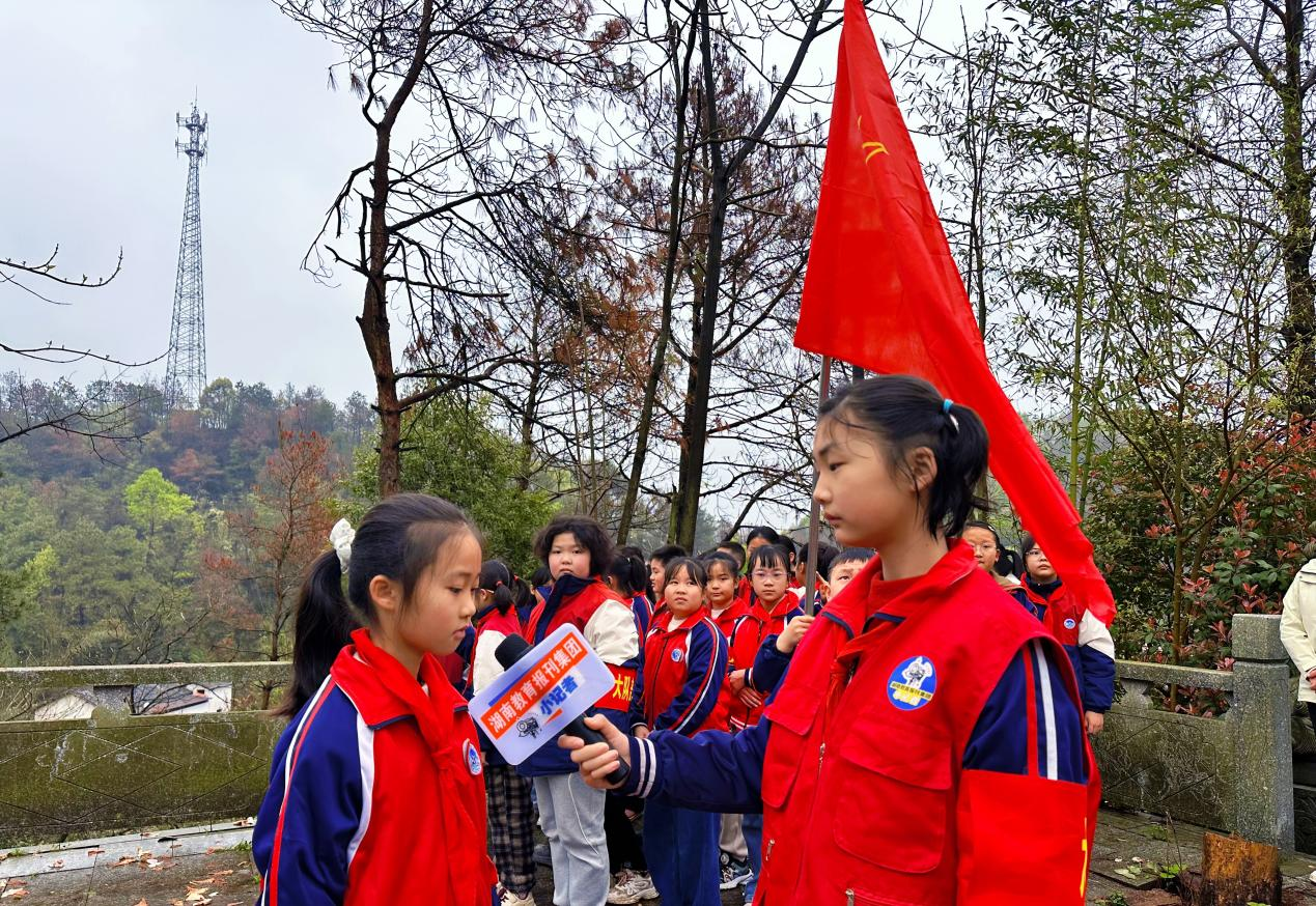 湖南教育报刊集团衡阳县小记者站(小记者 王悦兮)青山埋忠骨,鲜花寄哀思。3月30日,渣江中心小学党支部联合少先队大队部共50余人,前往文德烈士墓开展“缅怀革命先烈 传承红色基因”清明祭扫活动。