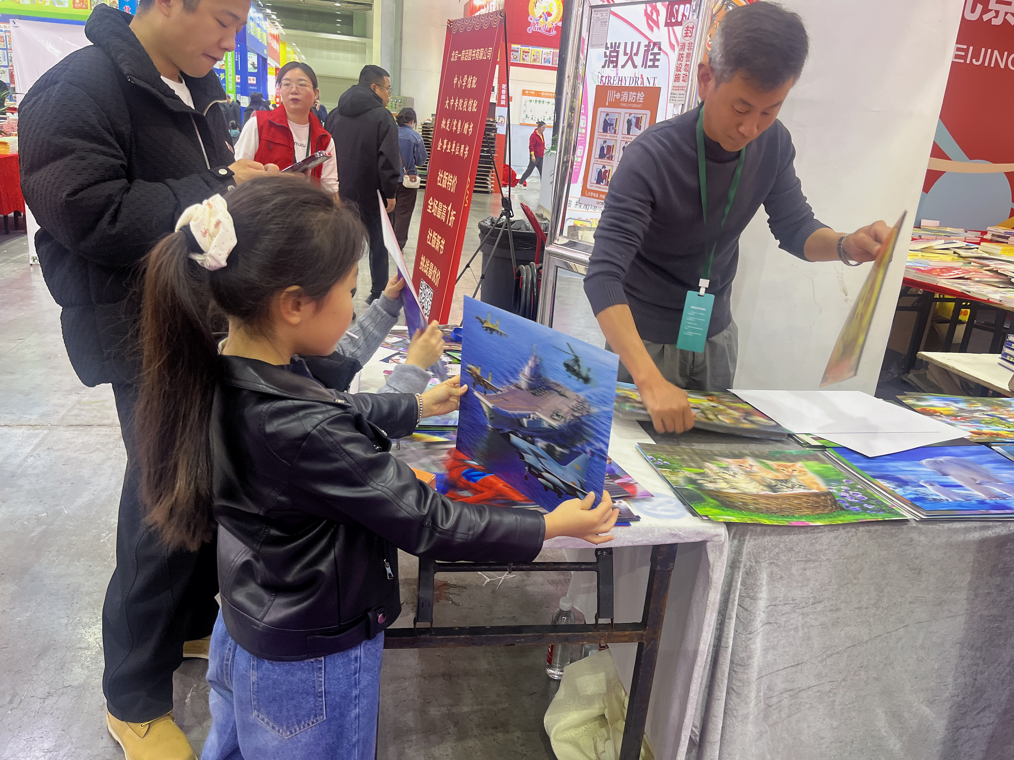我穿梭在各个展位间,看到了各种类型的书籍。在一个展位前,我被一幅很有立体感的图片吸引,上面是我们国家的第一艘航空母舰“辽宁舰”,让我深深地为我们祖国感到自豪。