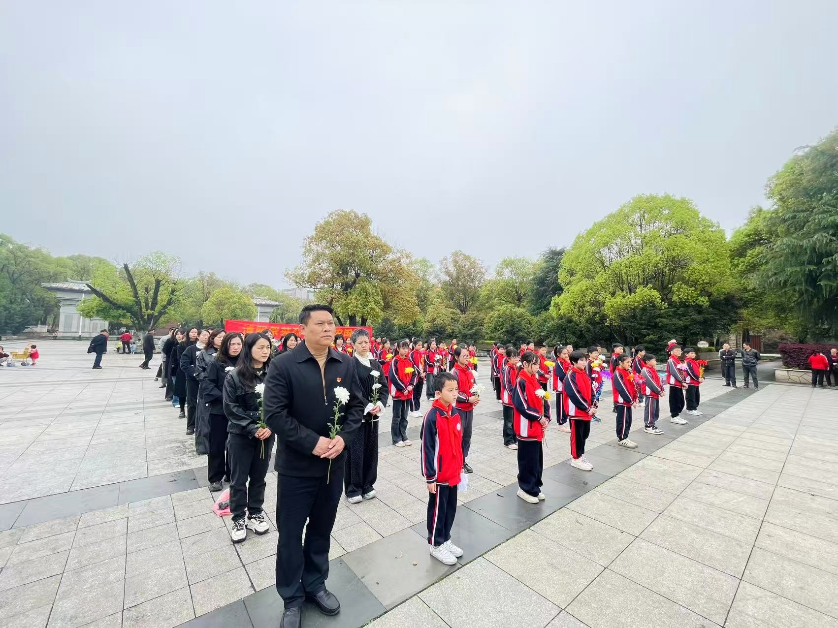上午十时,师生们整齐列队,手持小白花,怀着崇敬的心情步入烈士陵园。苍松翠柏掩映下,烈士纪念碑巍然矗立,现场气氛庄严肃穆。全体师生肃立默哀,向为民族独立、人民解放和国家富强英勇献身的革命先烈致以最深切的悼念。随后,少先队员代表缓步上前,向烈士纪念碑敬献花篮,朵朵白花寄托着对先烈的无限追思。