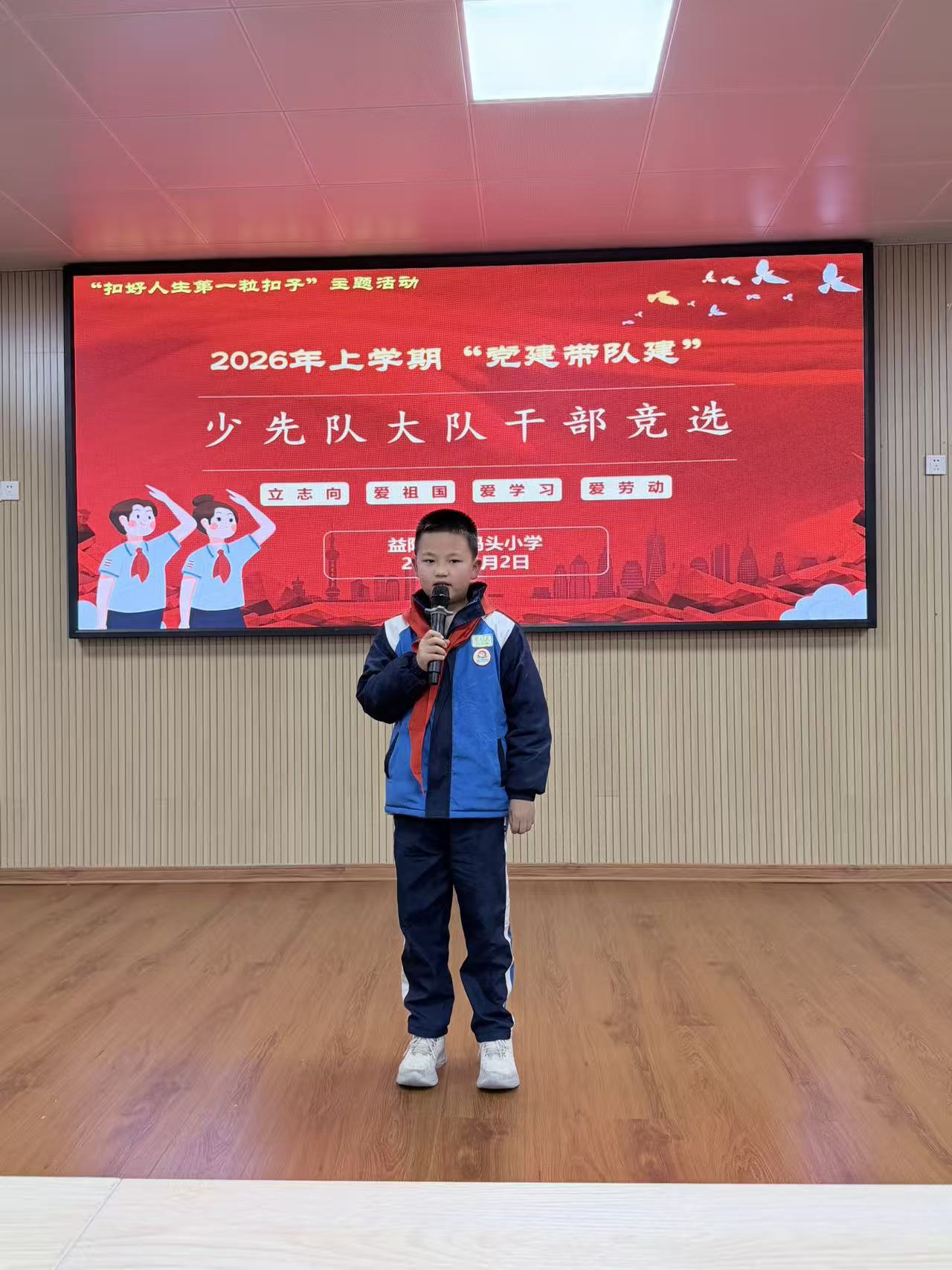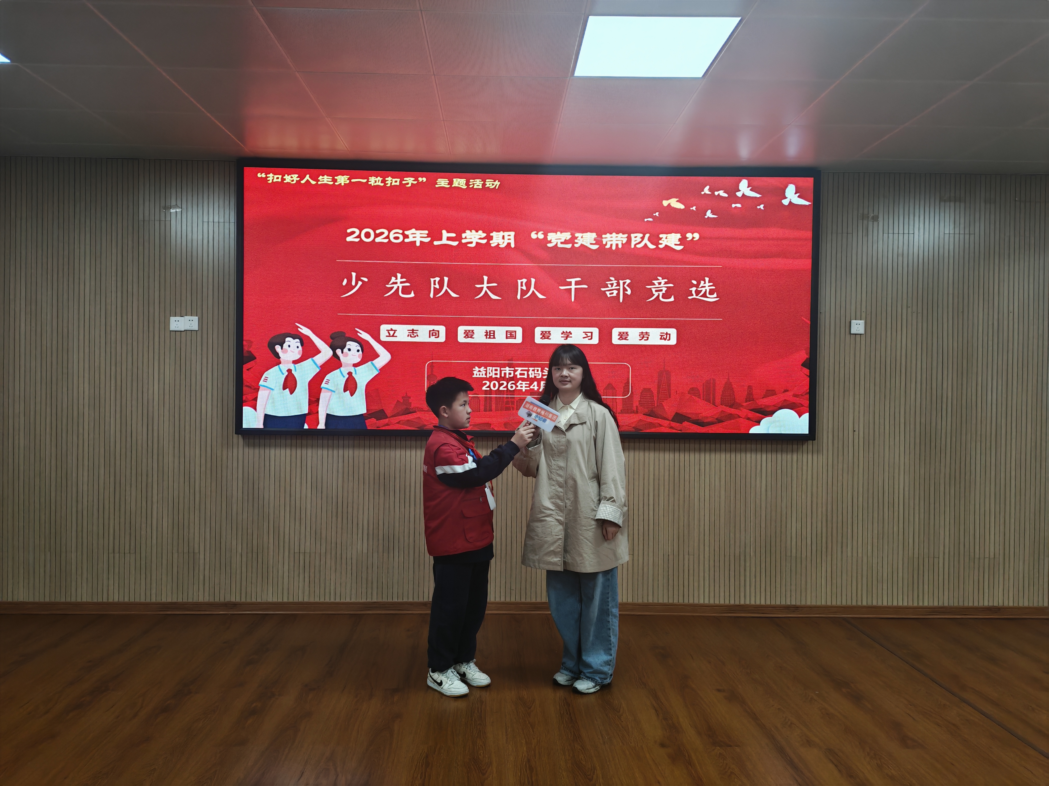 湖南教育报刊集团资阳区小记者站(小记者 张茗哲)4月2日,益阳市石码头小学2026年上学期少先队大队干部竞选活动举行。本次活动以“立志向、爱祖国、爱学习、爱劳动”为核心指引,为全校少先队员搭建起展示风采、历练本领、服务集体的成长平台。活动启动以来,得到了各中队队员的热烈响应,同学们踊跃报名、精心筹备,以饱满的热情迎接这场属于自己的成长考验。