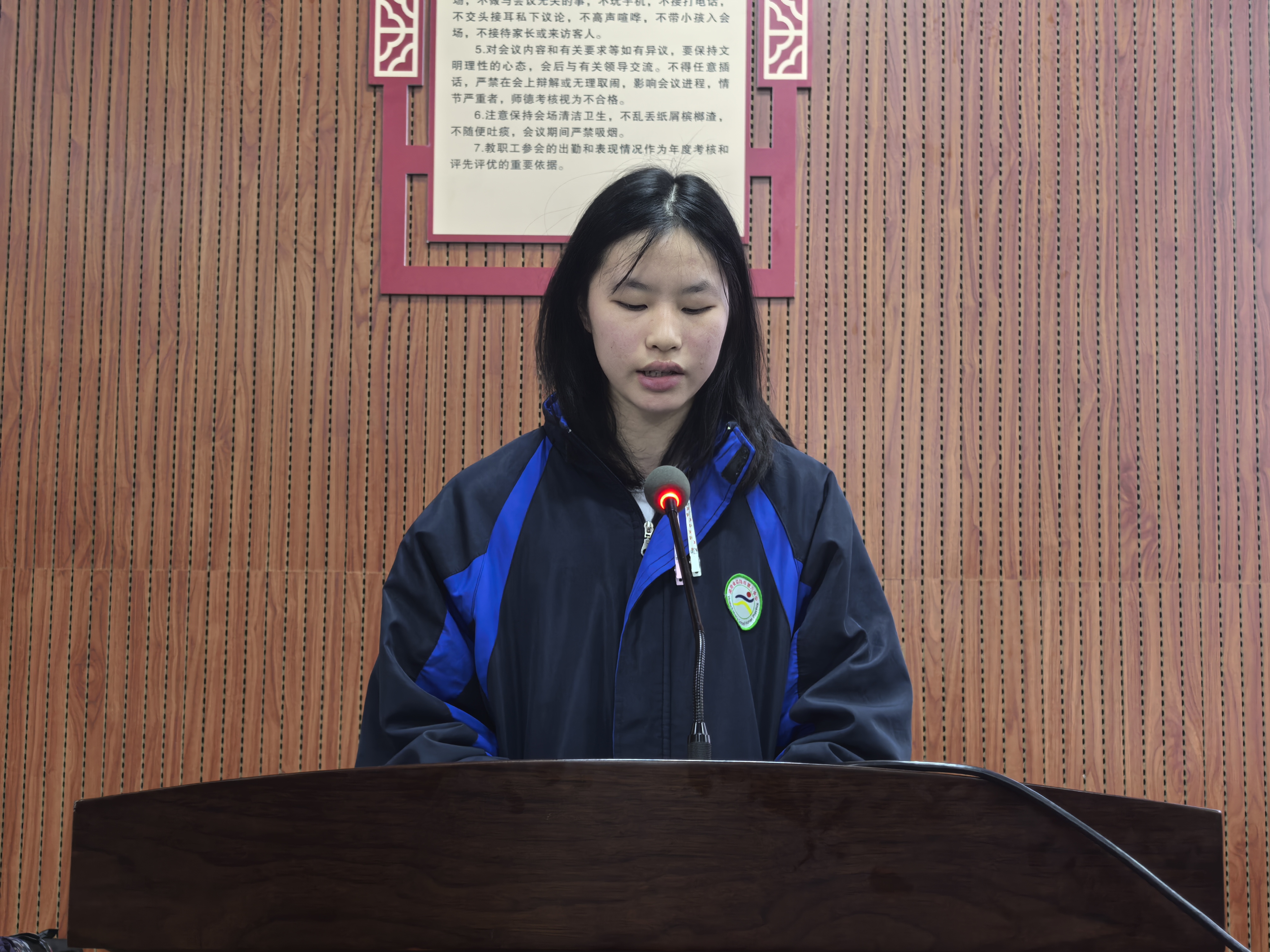 随后,入团积极分子代表姚懿琼同学上台发言,她承诺将严格遵守纪律,勤学深思,以饱满热情投入学习,全面提升自我,争取早日加入光荣的共青团。