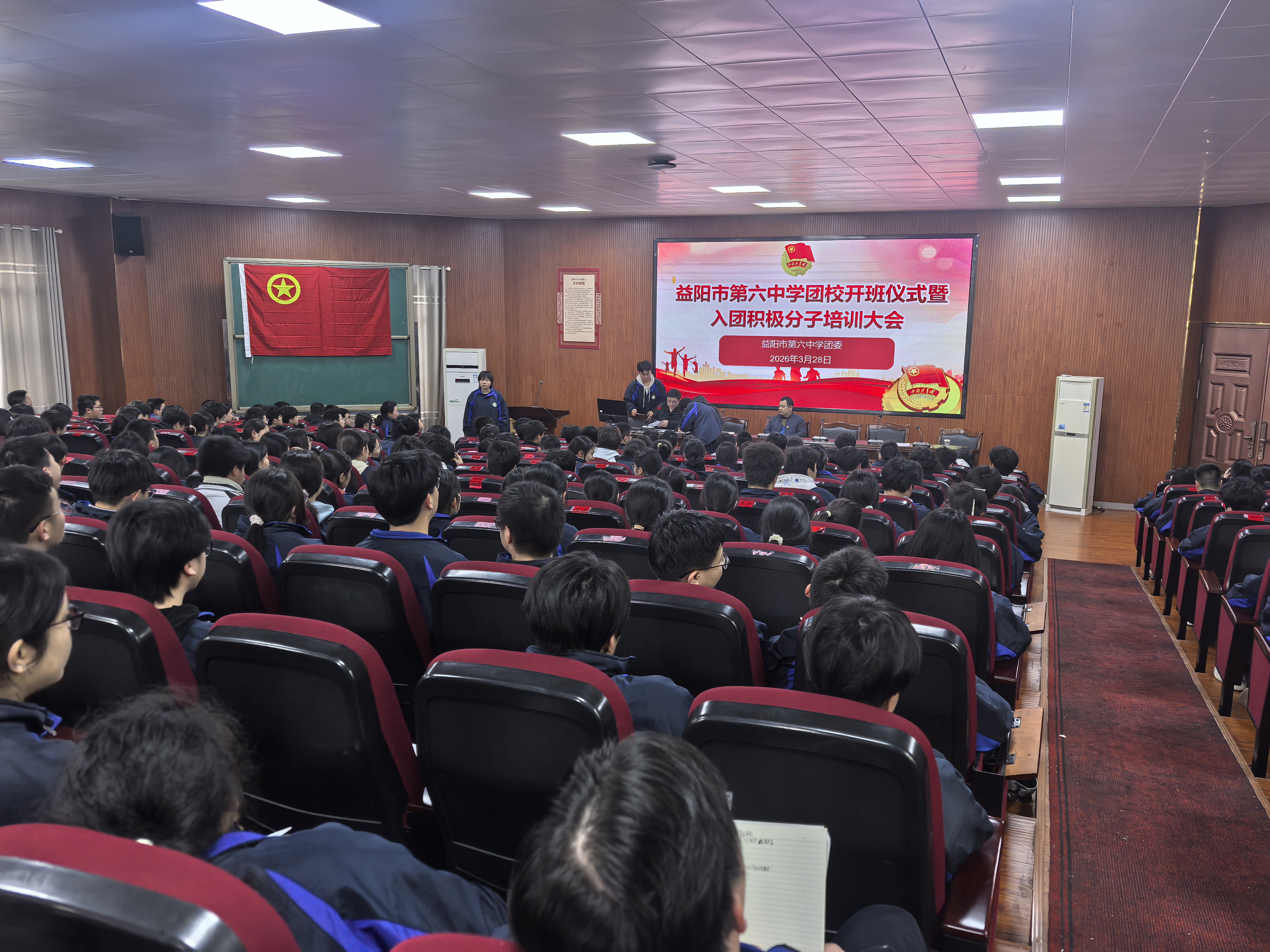湖南教育报刊集团资阳区小记者站(小记者 刘嘉妍)青春献礼,向党而行。3月28日,益阳市第六中学2026年春季学期团校开班仪式暨入团积极分子培训大会在学校科技楼二楼涌泉讲堂举行。全体入团积极分子齐聚一堂,正式开启新一期团校学习征程。