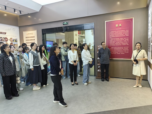 启动仪式后,讲解员带领学校师生参观了该所展厅。展厅展示了以毛泽东为核心的党的第一代领导人对“核”事业的战略部署和坚强决心;“峥嵘岁月 不朽功勋”展示了湖南省核地质事业风雨兼程、筚路蓝缕的光辉历程;“沉浸式体验区”通过“艰辛找矿”“土法炼铀”“千米掘进”等纪录片,展示了湖南省核工作者不怕牺牲、前仆后继的奉献精神和“三光荣”“四特别”的地质人精神。