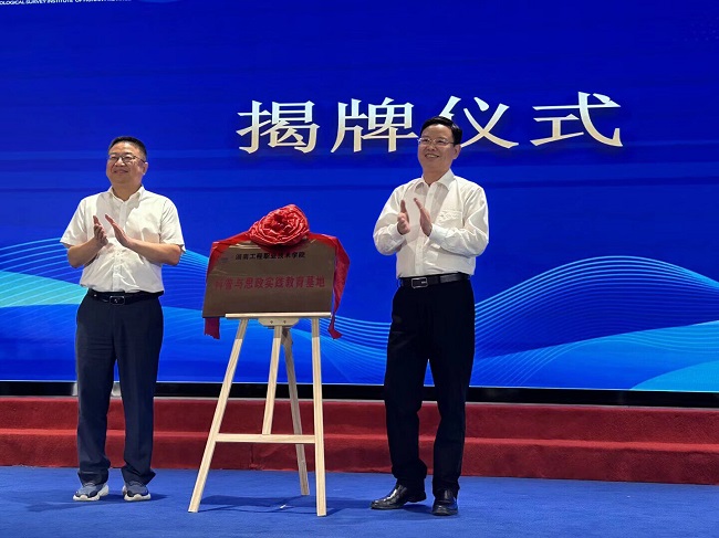 据悉,湖南工程职院党委副书记、校长陈志军,党委副书记、工会主席李武初亲临参加“科普与思政实践教育基地”授牌,并表示将进一步在思政实践教学、教学资源建设等方面深化与核地质所的合作,实现思政育人新成效。此次校所共建,不仅为学校地质类专业学生的“精准思政”注入新活力,更探索出“行业资源反哺教育、教育成果服务行业”的新路径。随着基地的常态化运行,将有更多工程学子在这里感受的报国担当,引导他们成长为扎根湖南、服务国家地质事业的高素质技能人才。