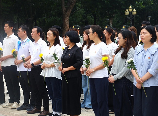 湖南教育新闻网讯(通讯员 姜哲昊)9月30日,在我国第十二个烈士纪念日当天,湖南工程职业技术学院校团委在长沙县双拥公园举行“缅怀革命先烈志•我和祖国共成长”主题团日活动。学校党委委员、副校长玉小冰,学生工作部副部长何炎芬、校团委委员及百余名师生代表参加活动。校团委副书记姜哲昊主持活动。