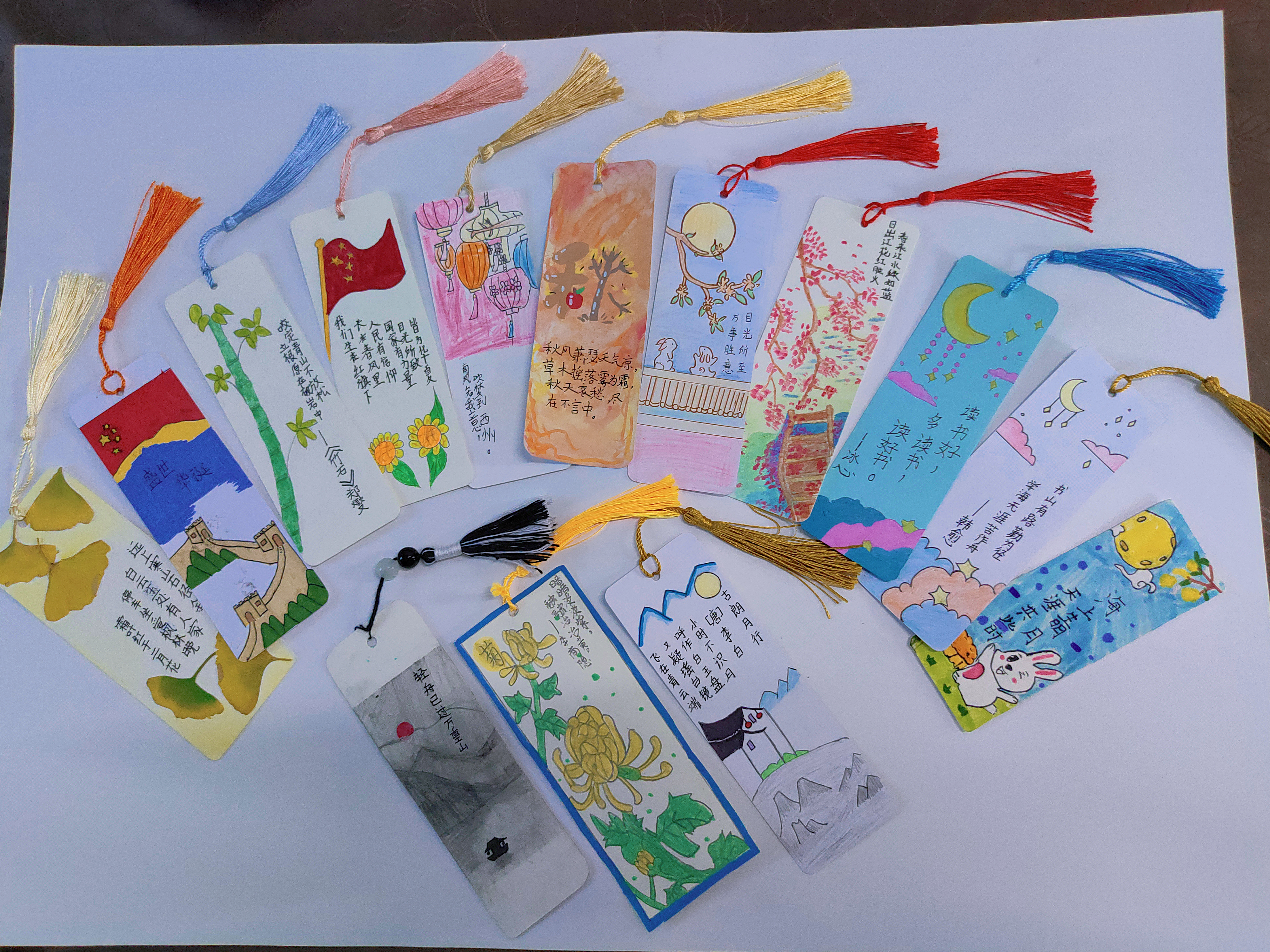 “我的书签元素是枫叶,因为我最喜欢的诗句是‘停车坐爱枫林晚,霜叶红于二月花’,就想把诗里的画面变成真!”六年级的同学眼睛亮晶晶地说。