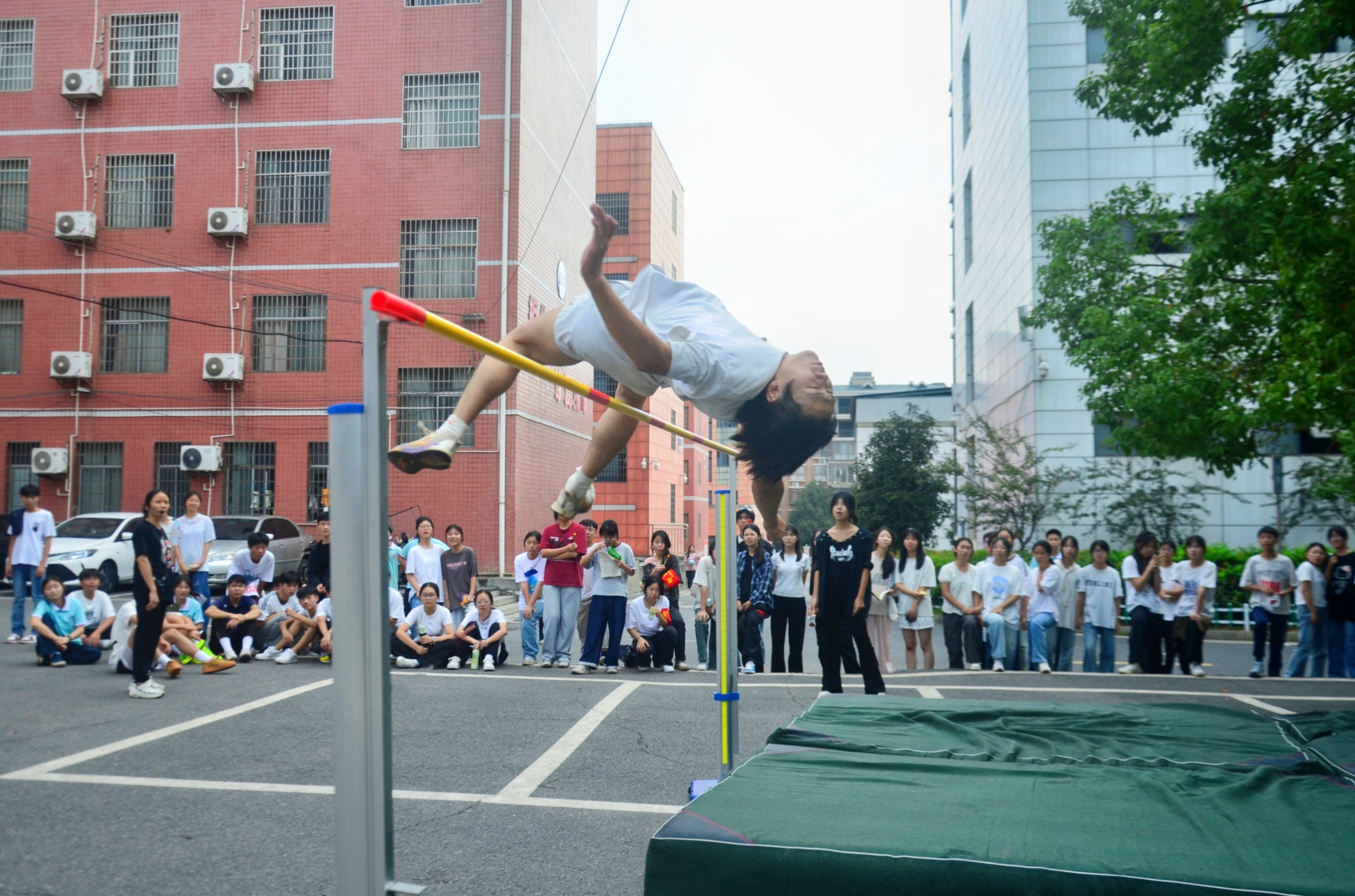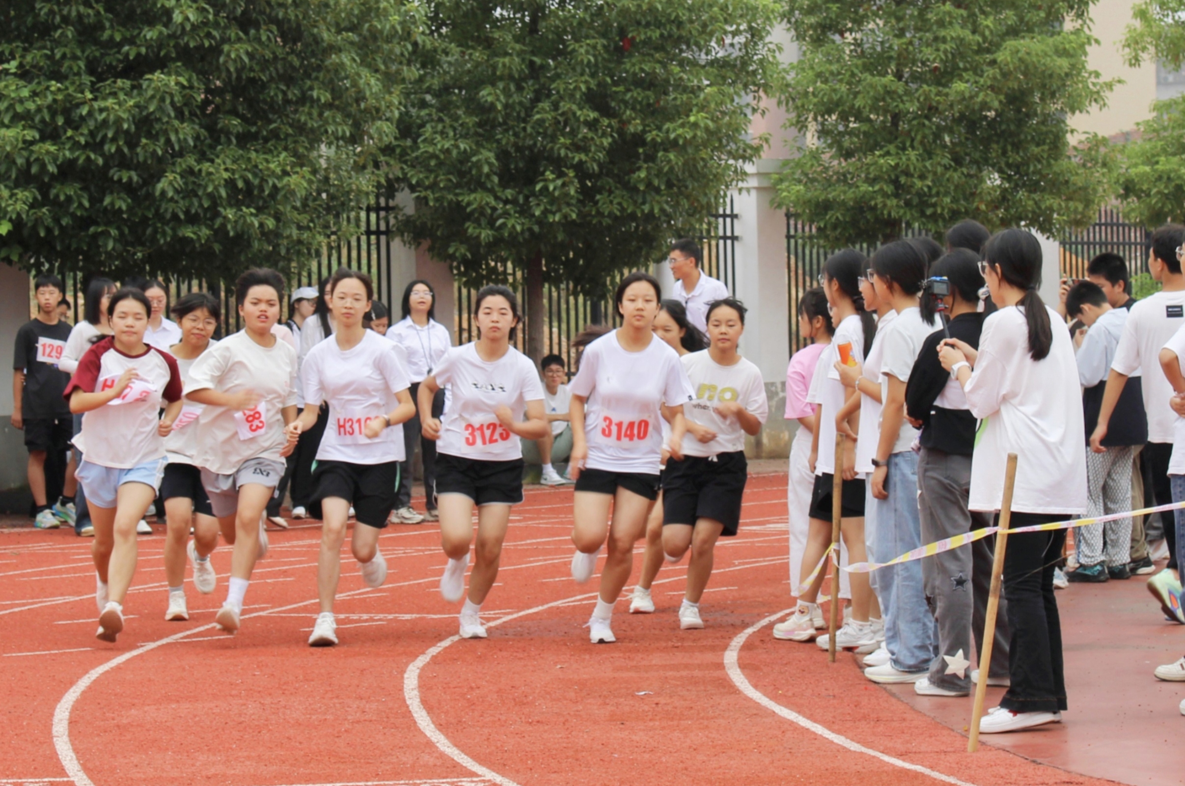 本届运动会赛场激情燃爆。田径赛道上,跳高选手如雄鹰展翅破杆,其中H2415班吴依晨和H2413班贺奥蓉更是凭借1.26米的成绩惊艳折桂,一举刷新该校女子跳高纪录。长跑健儿汗湿征衣仍坚毅前行,接力赛中接力棒传递着班级的力量与希望。女子实心球现场,C2508班周吕欣亦不甘示弱,以11.5米的成绩再添纪录荣光。趣味赛场欢腾不息,“摸石头过河”的惊险试探、自行车慢骑的凝神角逐、跳绳竞技的轻盈跃动,每一幕都引来阵阵喝彩。教师们暂别粉笔教案,投身趣味赛事与学生同台竞技,在欢笑中拉近师生距离,构成赛场最温馨的风景,全方位展现了师生们昂扬向上的精神风貌与对体育的炙爱,将拼搏与协作的精神镌刻在校园的每一个角落。