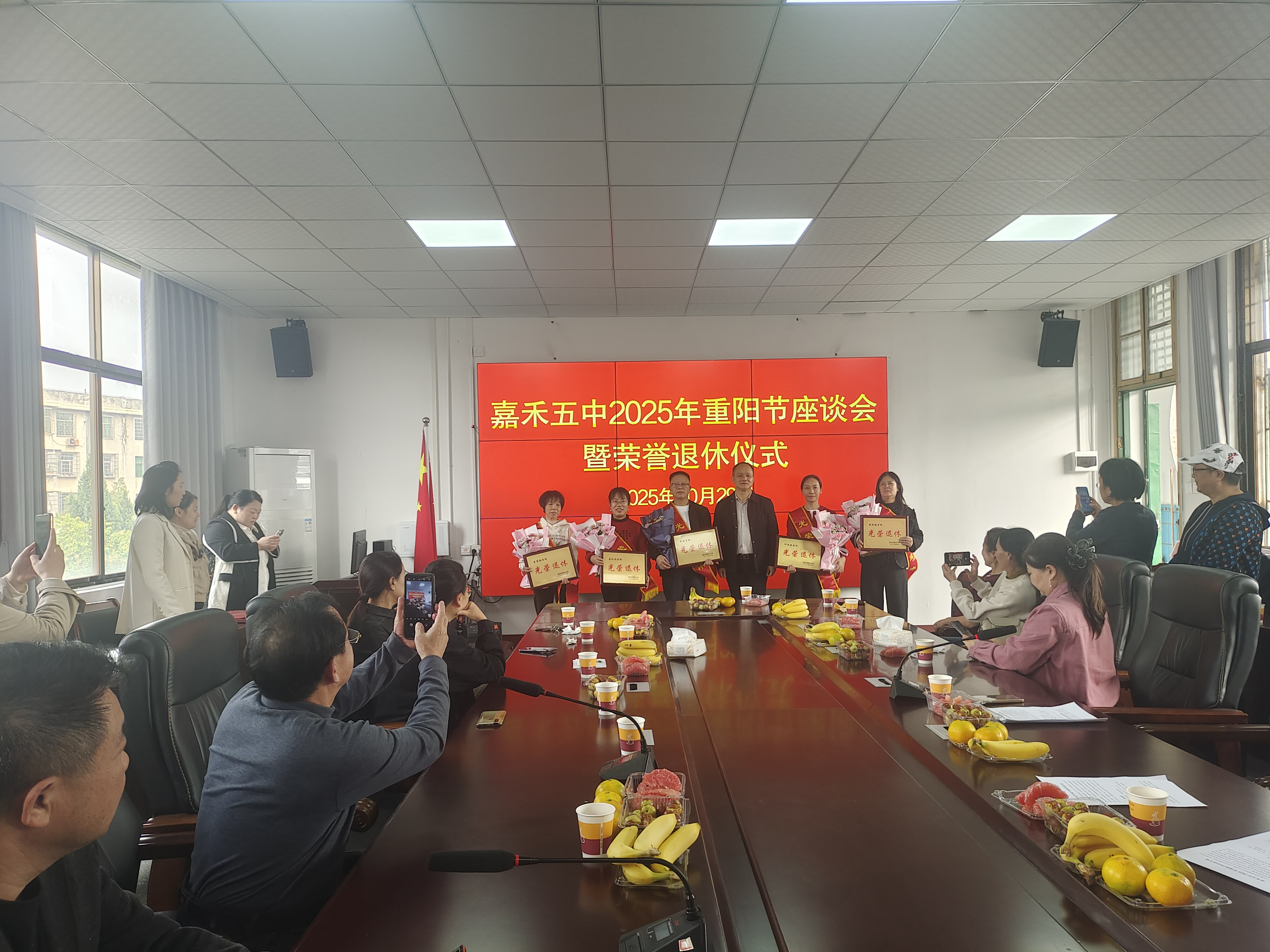 本次重阳节活动以仪式感践行“孝亲敬老”,为全校师生树立榜样,让美德从口号落地为具体行动,融入校园文化基因;同时通过座谈会与仪式,拉近新老教师、学校与退休群体的距离,让在职教师感受到职业尊严,让退休教师心系校园,形成“老带新、新敬老”的温情氛围;更将敬老爱老转化为校园精神的一部分,增强师生对学校的认同感与归属感,让五中校园成为有温度、有情怀的精神家园。