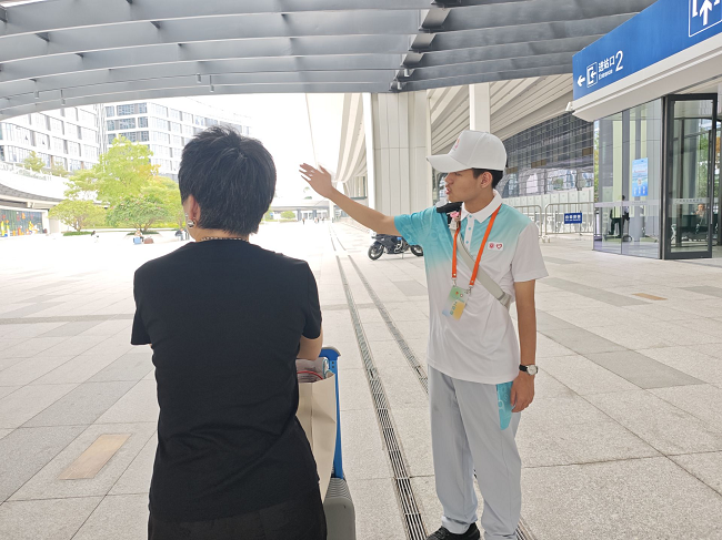 志愿服务期间,欧旻曦同学在交通指引、信息咨询、文明引导等岗位上,以细致的服务和温暖的微笑,为往来旅客提供赛事查询与出行指引,用实际行动践行“奉献、友爱、互助、进步”的志愿精神,成为全运会场外一道动人的青春风景线。