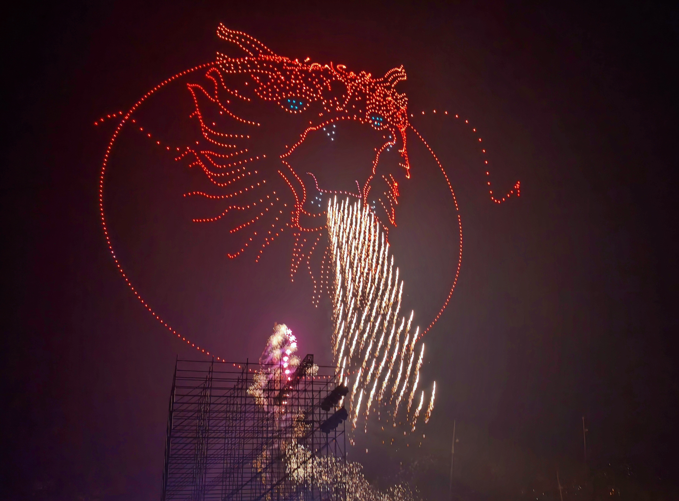 看着这么美的焰火,我心情激动得像要跳出来。我觉得龙头和奖杯是焰火大会的“守护神”,无人机和烟花是天空的“魔法师”。我想:这些工人叔叔一定很辛苦,要花好多时间准备,才能让我们看到这么美的表演。还有那些工程师,让无人机飞得那么整齐,真了不起!