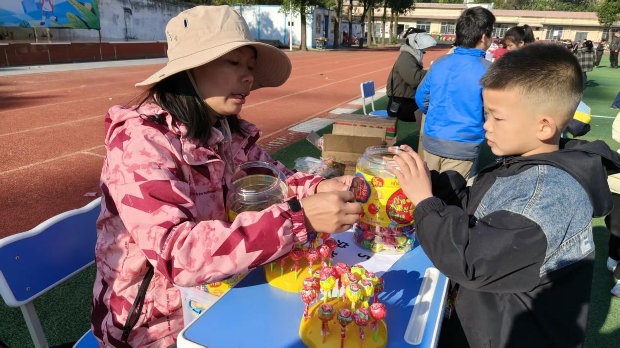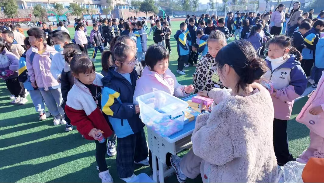 兑换活动刚开场,足球场瞬间热闹成了小集市:有的孩子晃着运动体健币喊:“这是我参加宁乡市中小学‘小乡超’足球赛挣来的!”有的攥着劳动力行币笑着说:“这是我主动帮班级值日得到的!”兑换区的奖品堆成了小山:除了实用的文具、趣味玩具和美味零食,最抢手的当属减作业卡、加个鸡腿卡、广播站点歌卡、电话表扬卡和当一天班长卡——这些带着“小心机”的特色奖品,让孩子们的眼睛亮得像星星,排着队探头张望,挑中心仪奖品时蹦跳的模样,把快乐都“蹦”满了整个校园。
