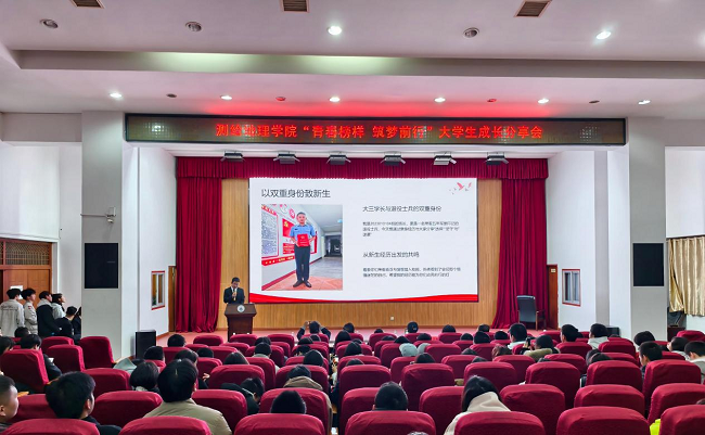 湖南教育新闻网讯(通讯员 陈丽 李佳)11月17日,正值国际大学生节,为强化朋辈引领效能,助力青年学子明晰职业方向、探索发展路径、做好成长规划,湖南工程职业技术学院测绘地理学院在学校图书馆报告厅举行“青春榜样 筑梦前行”大学生成长分享会。学院领导老师与2025级新生齐聚一堂,共赴一场聚焦职业探索、满载成长智慧的青春之约。